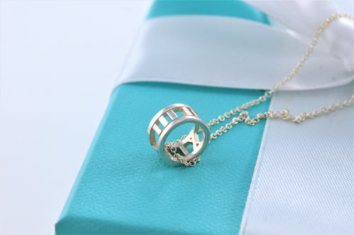 Tiffany & Co. Atlas Silver Roman Numerals Open Circle Loop Pendant Necklace