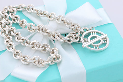 Tiffany & Co. Atlas Silver Roman Numerals Medallion Toggle Necklace