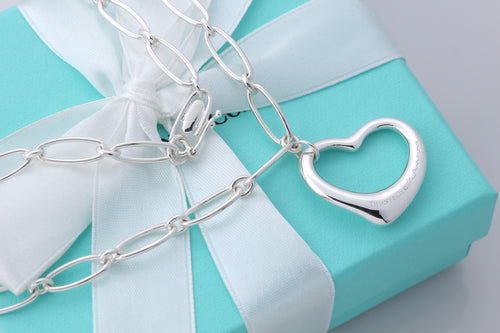 Tiffany & Co. Elsa Peretti Large Open Heart 27mm Pendant Link Necklace
