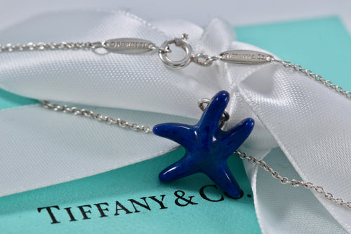 Tiffany & Co. Elsa Peretti Silver Blue Lapis Starfish Pendant Necklace