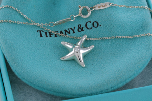 Tiffany & Co. Elsa Peretti Silver Diamond Small Starfish Pendant Necklace