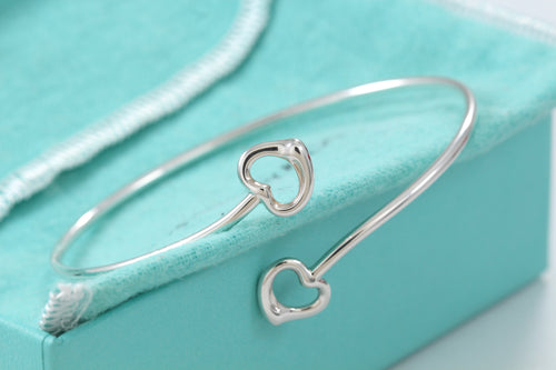 Tiffany & Co. Elsa Peretti Silver Double Open Heart Bangle Bracelet