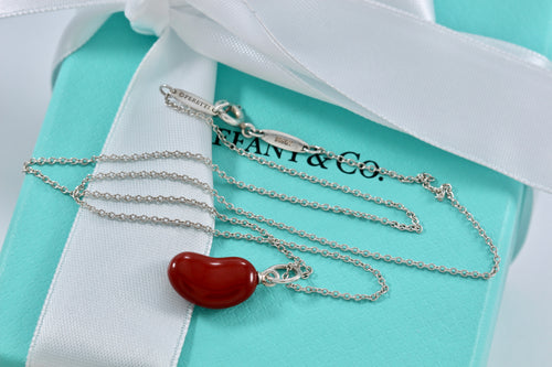 Tiffany & Co. Elsa Peretti Silver Red Jasper Bean Pendant Necklace