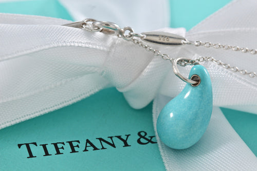 Tiffany & Co. Elsa Peretti Silver Turqouise Teardrop Pendant Necklace