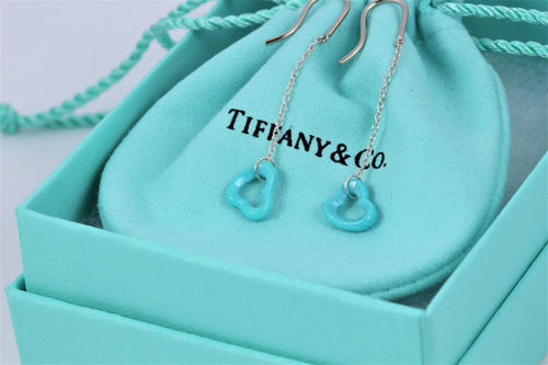 Tiffany & Co. Elsa Peretti Silver Turquoise Open Heart Dangling Earrings
