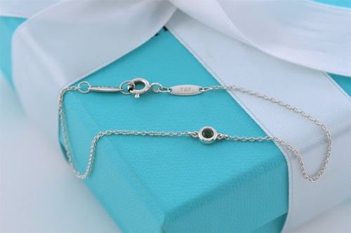 Tiffany & Co. Elsa Peretti Slver Color By The Yard Tsavorite Delicate Chain Bracelet