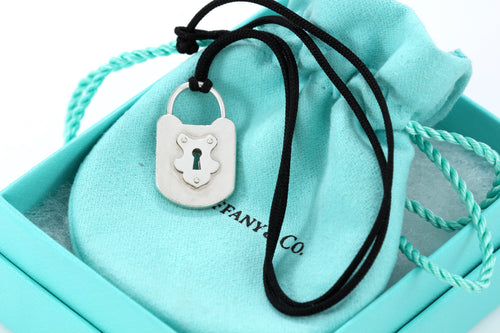 Tiffany & Co. Large Hammered Keyhole Padlock Pendant Silk Cord Necklace