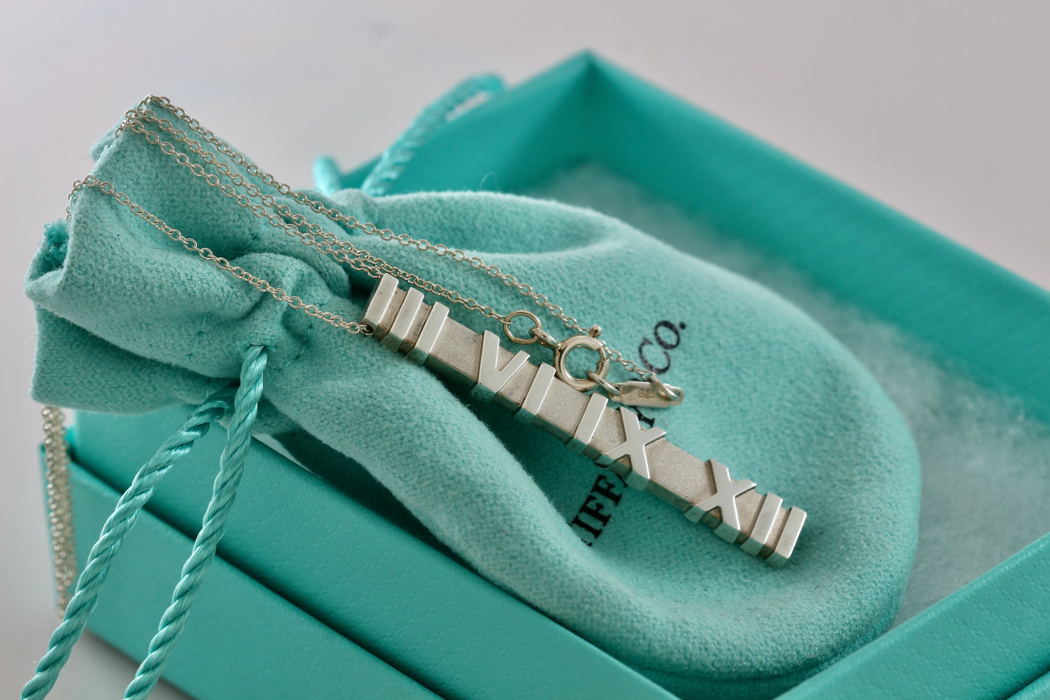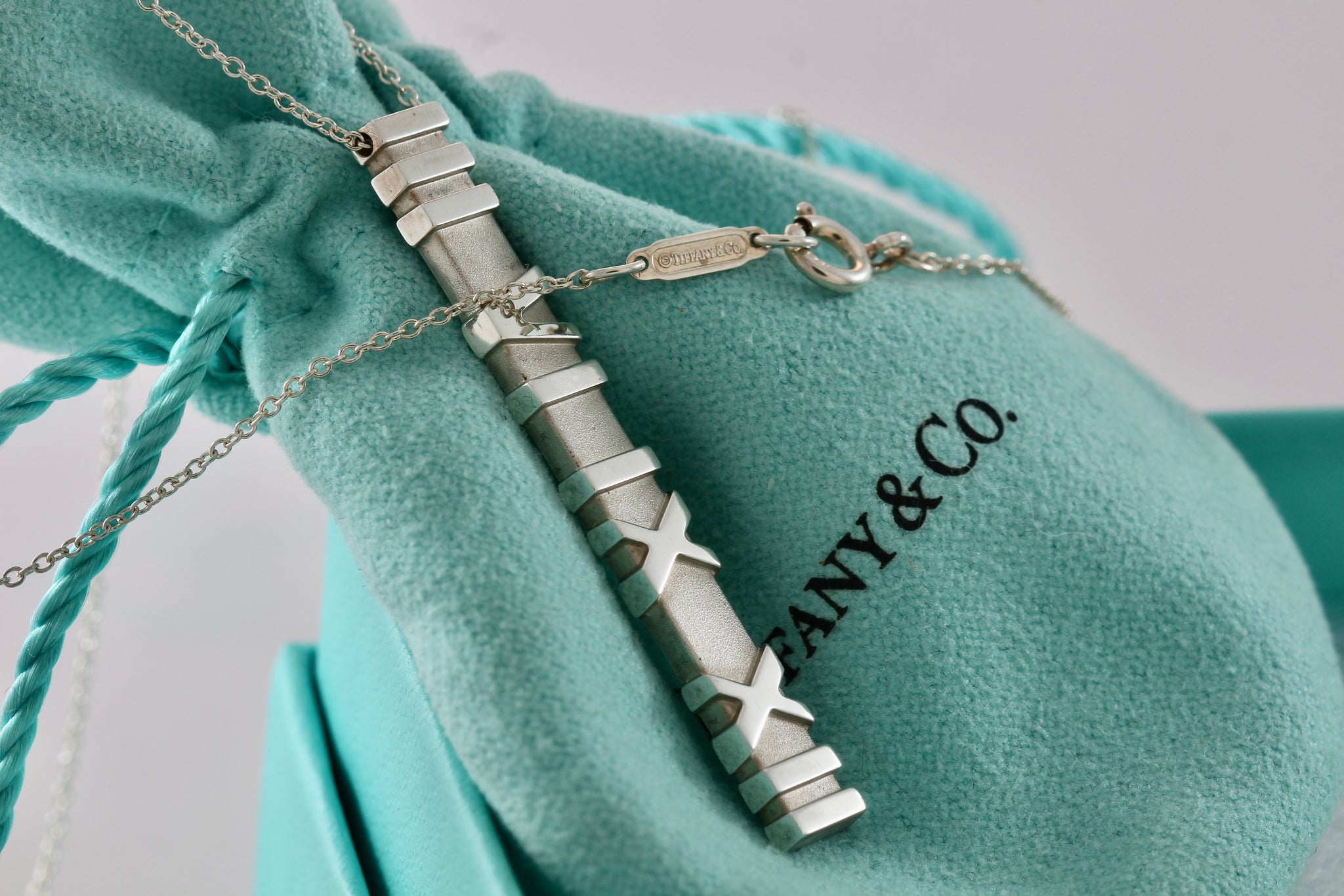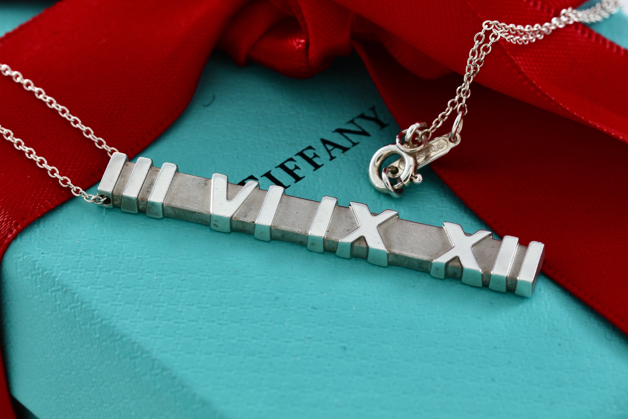 Tiffany & Co. Silver Atlas Roman Numeral Numbers Bar Pendant 17" Necklace