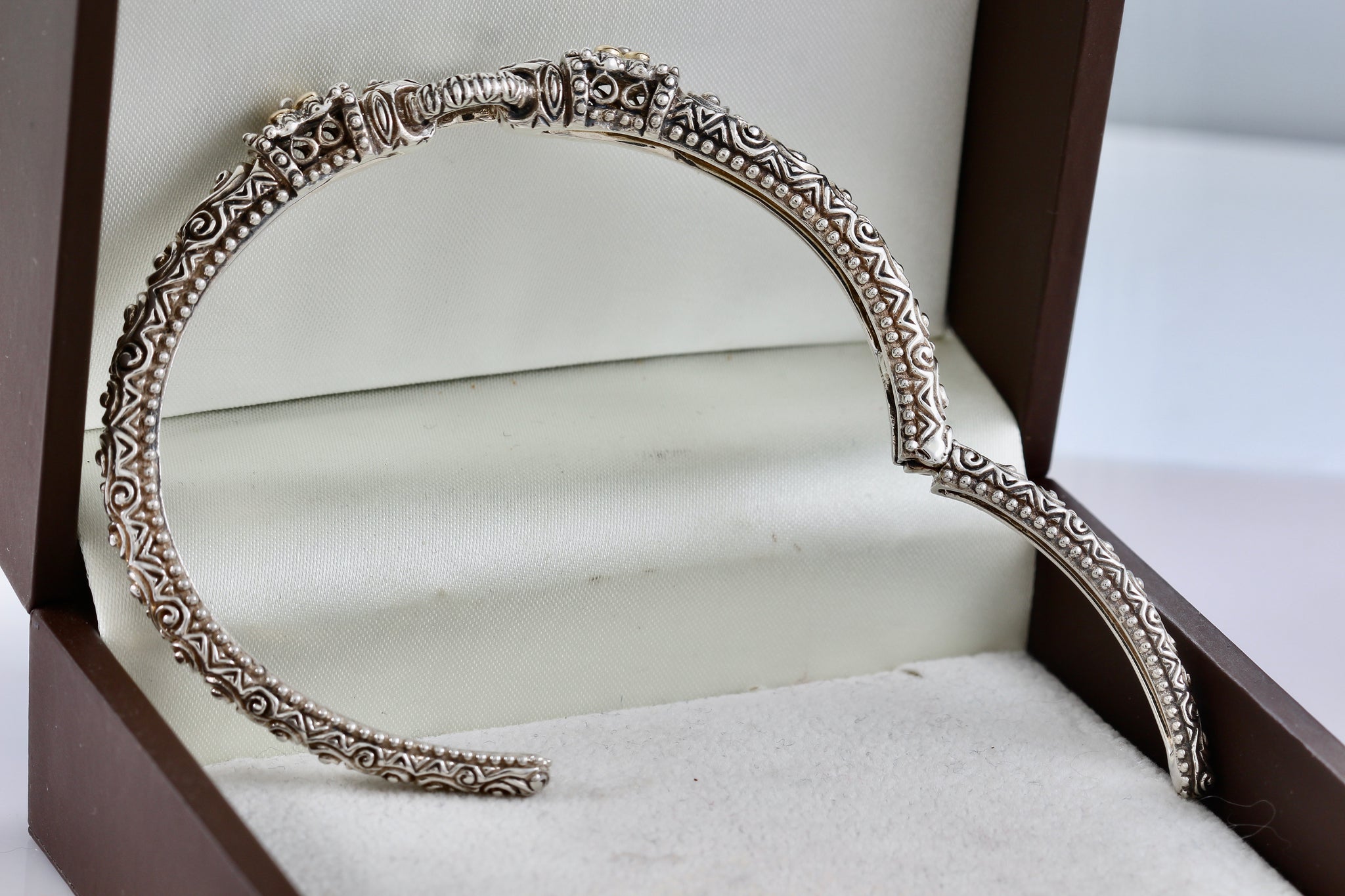 Barbara Bixby 18K Gold & Sterling Flower Hinged Bangle Cuff Large Bracelet
