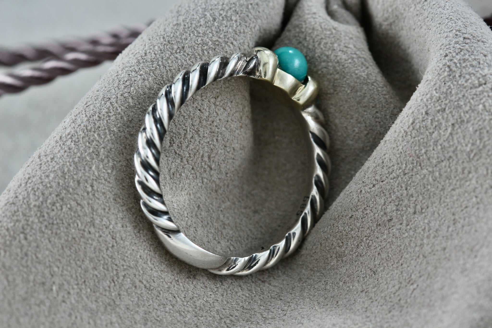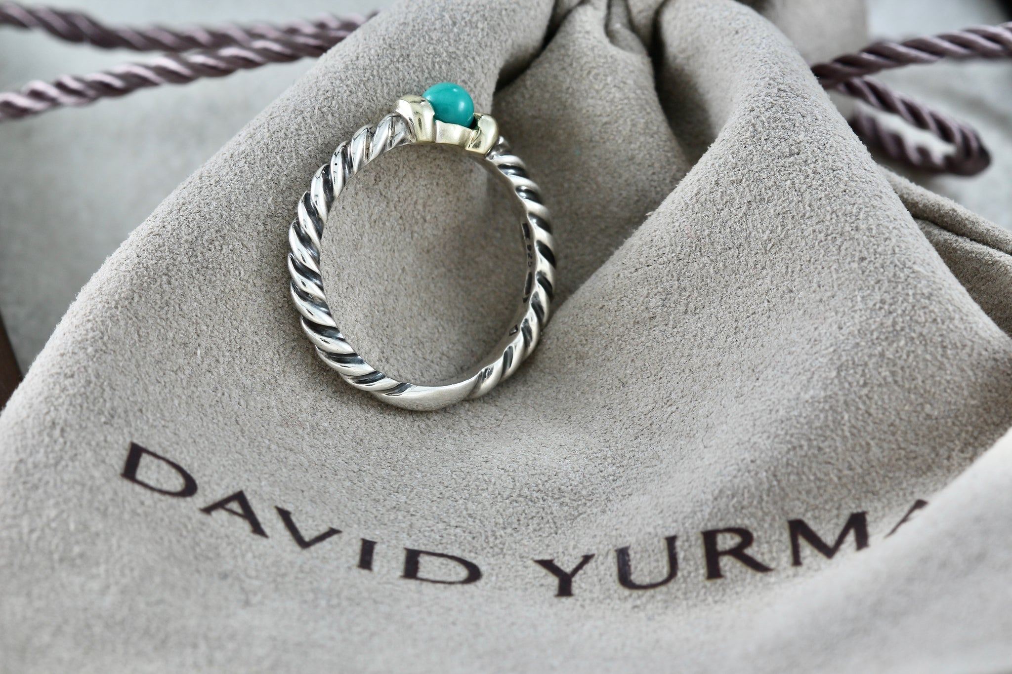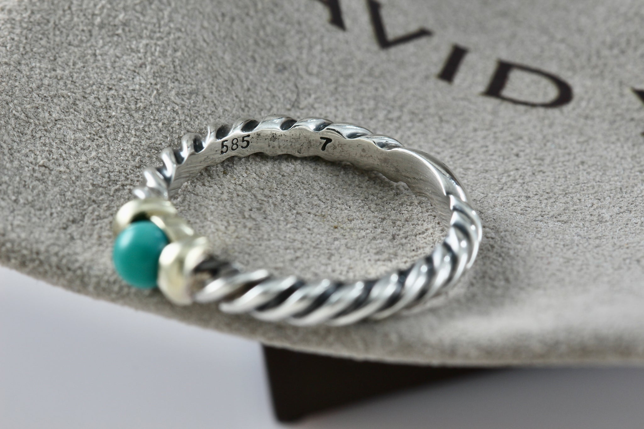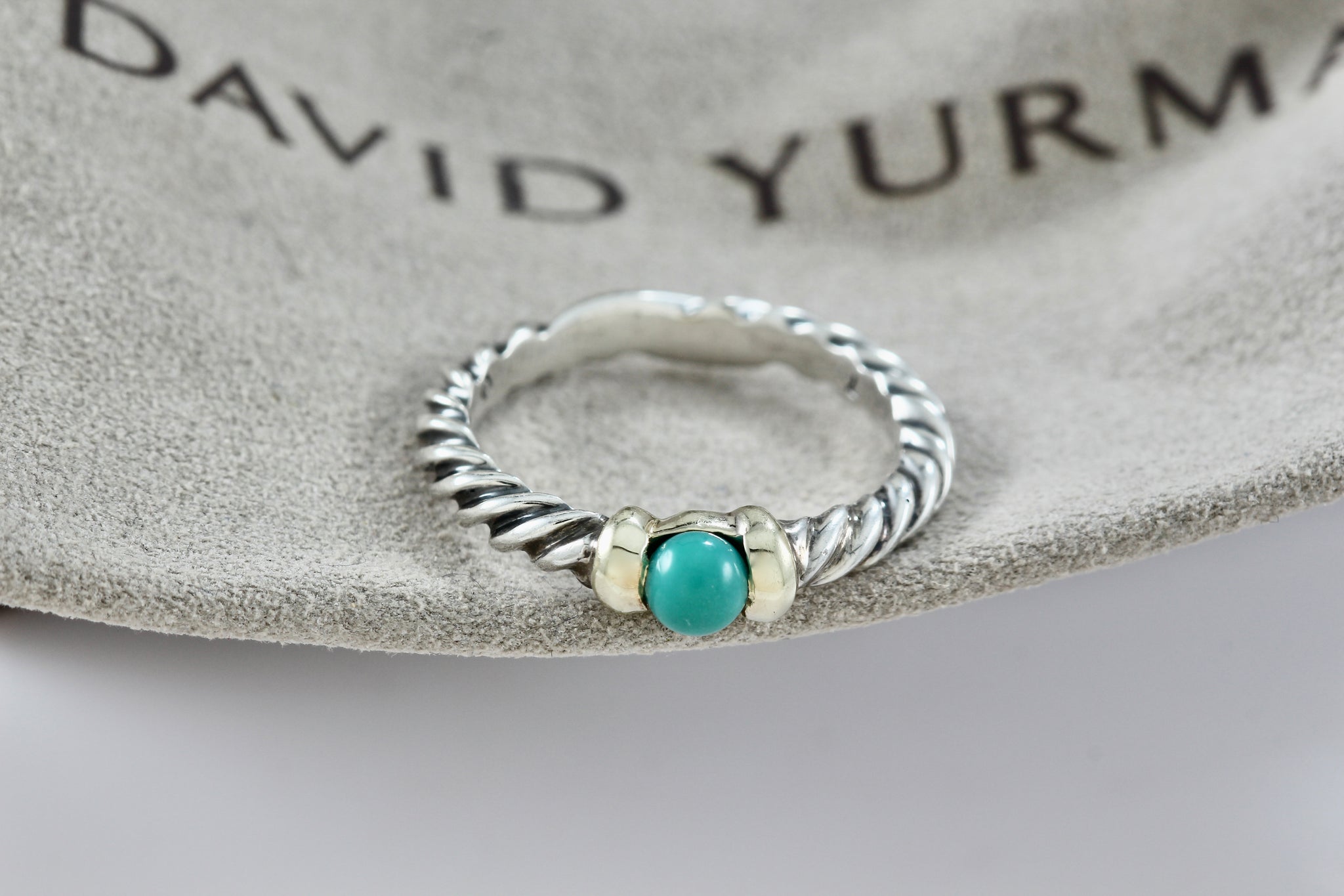 David Yurman Silver & 14K Gold Turquoise Bead Stackable Cable Ring Size 7