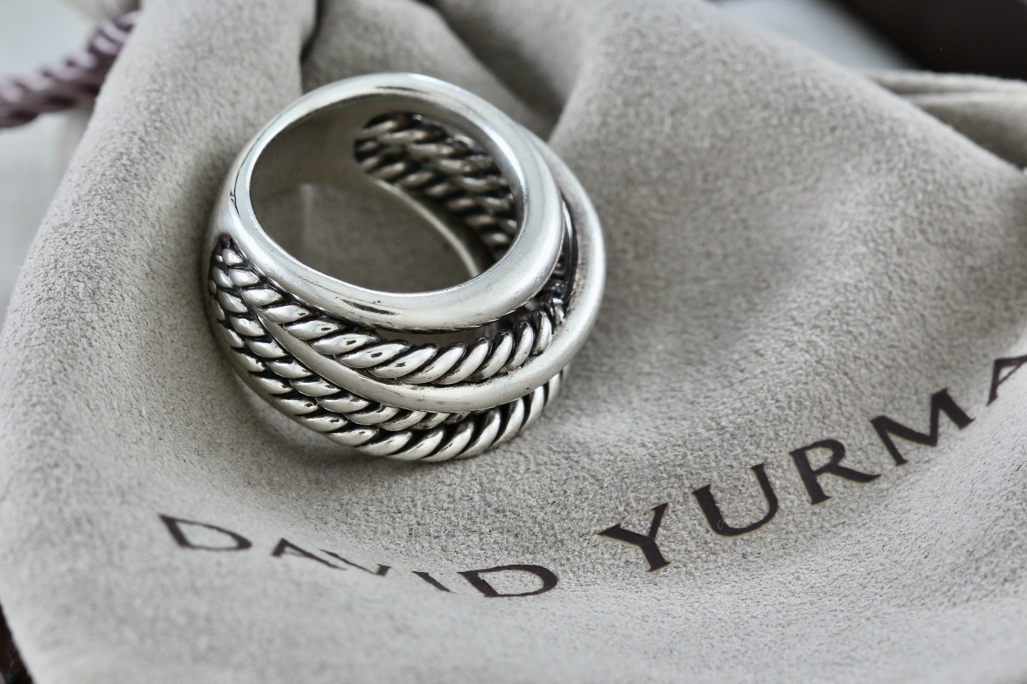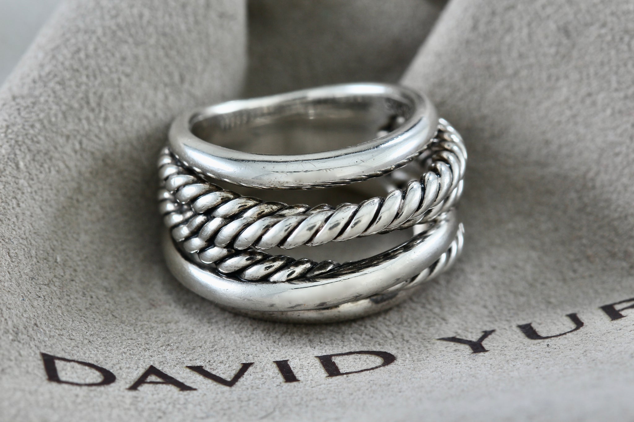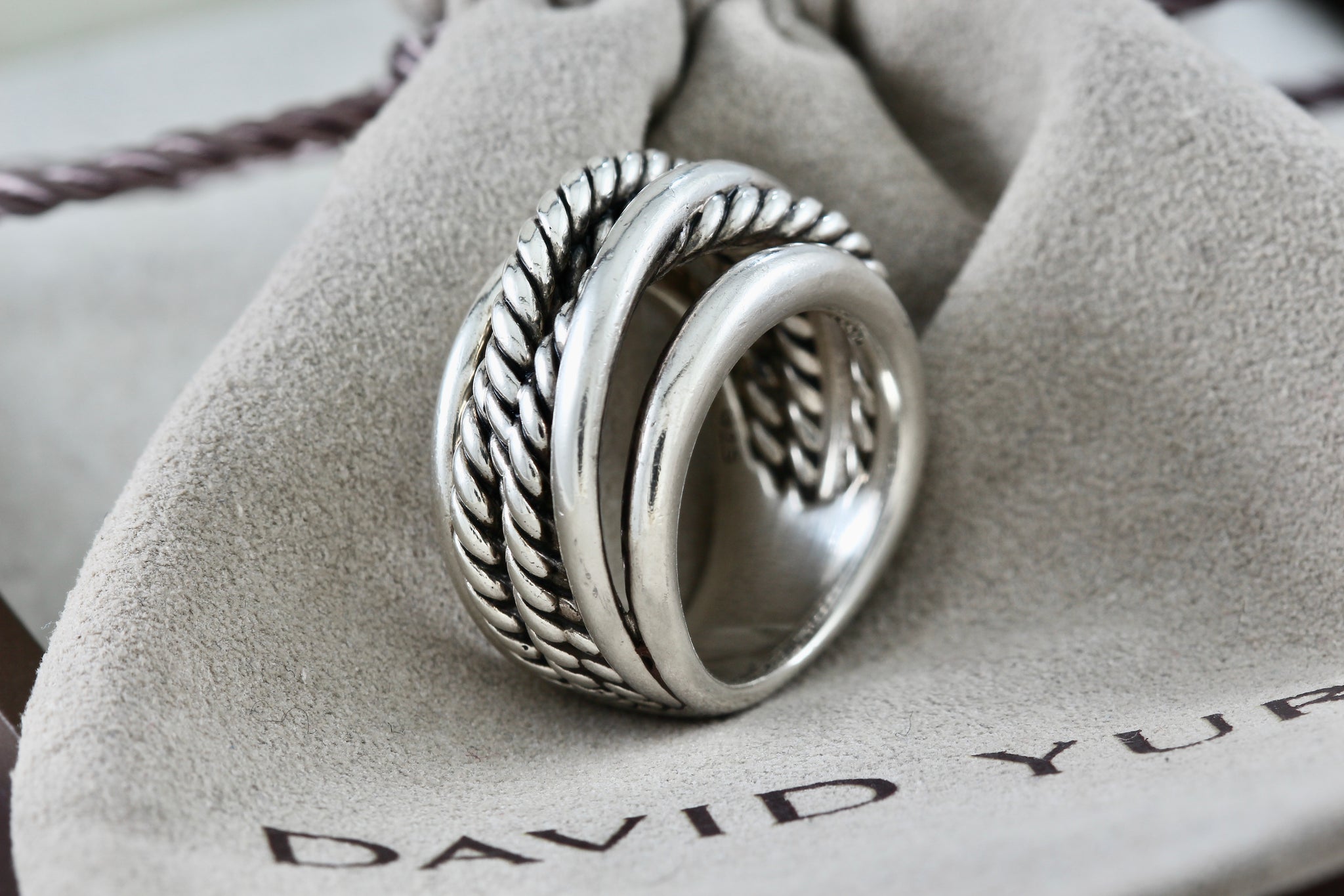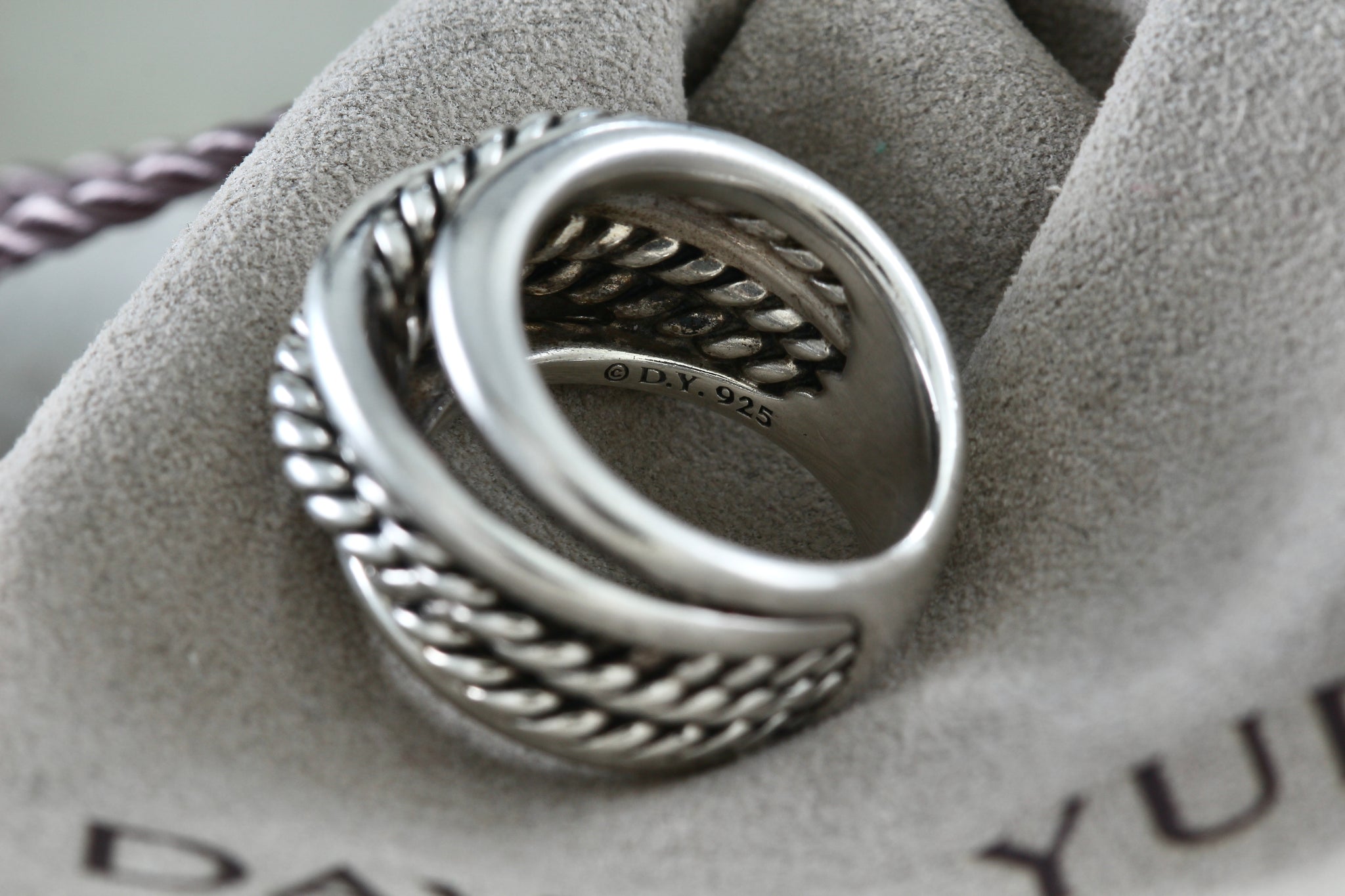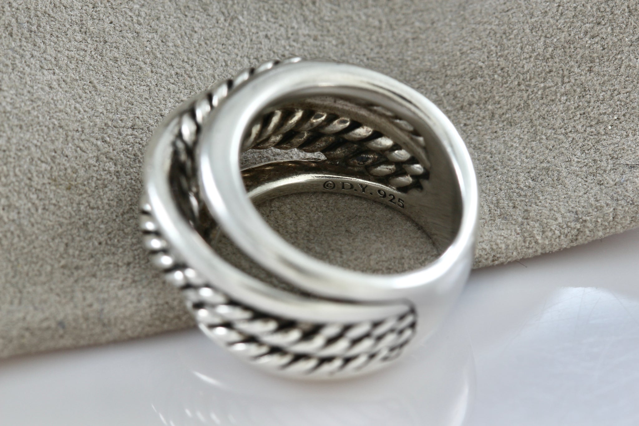 David Yurman Sterling Silver Wide Crossover Cable Band Ring Size 5.5