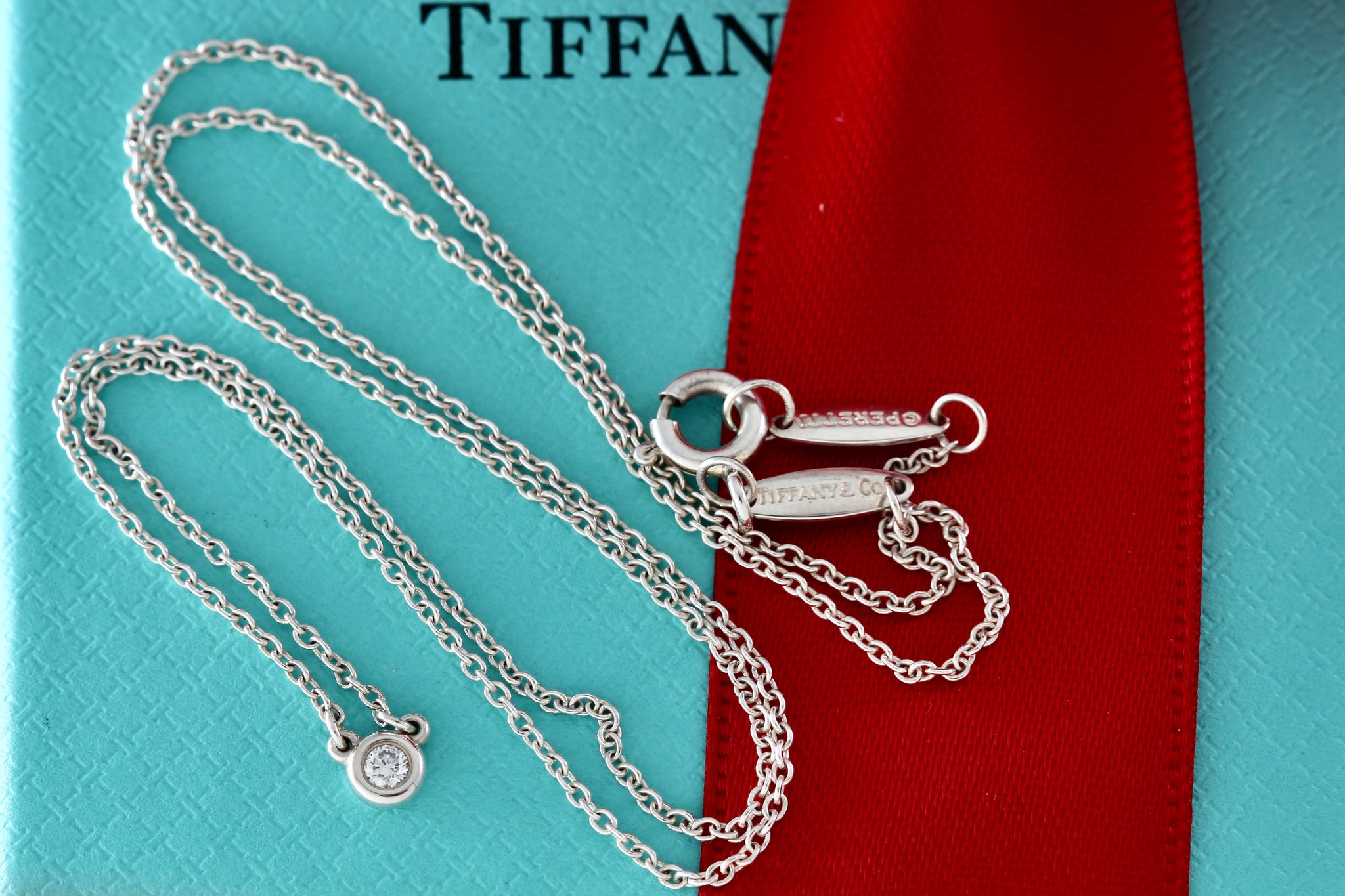 Tiffany & Co. Elsa Peretti Silver Diamond By The Yard .03ct 16" Necklace