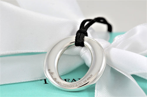 Tiffany & Co. Elsa Peretti Silver Medium Sevillana Pendant Silk Cord Necklace