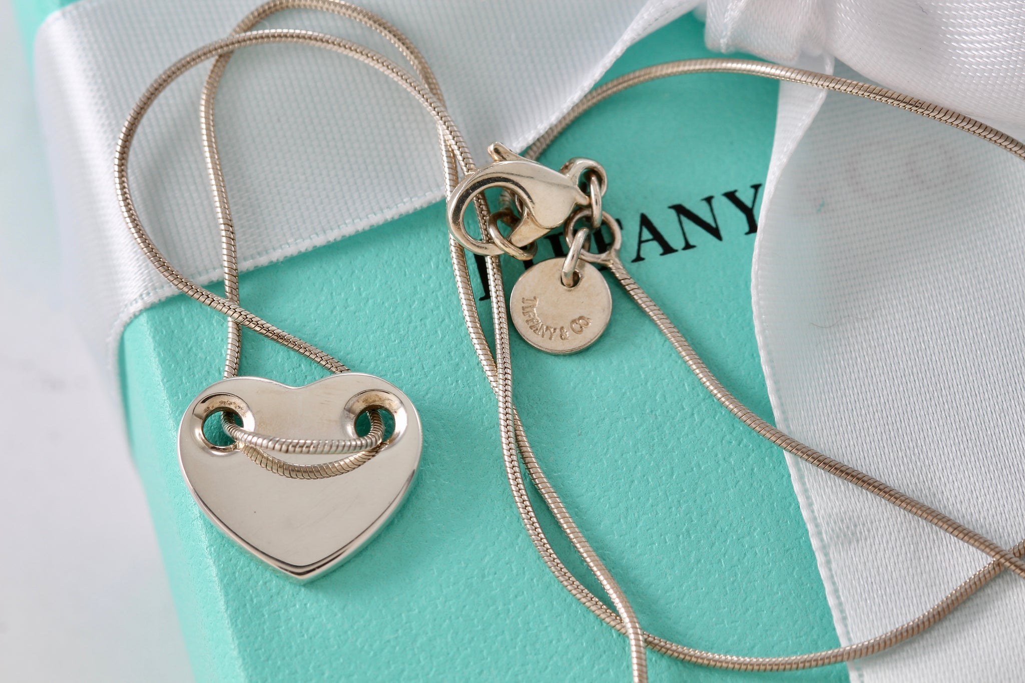 Tiffany & Co. Silver Sliding Heart Snake Chain 17" Necklace