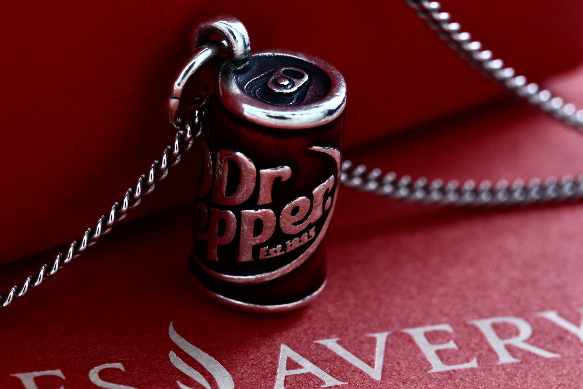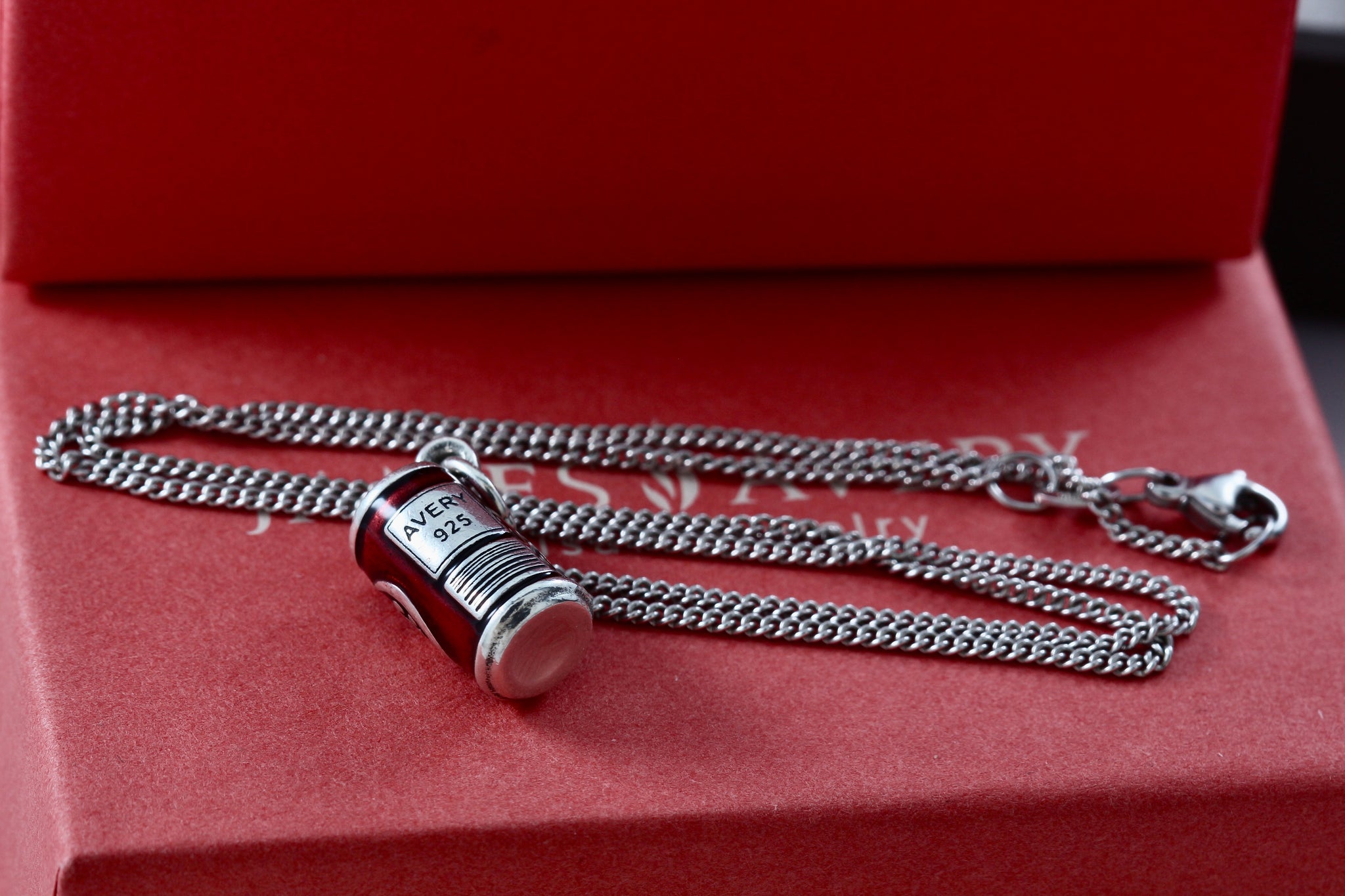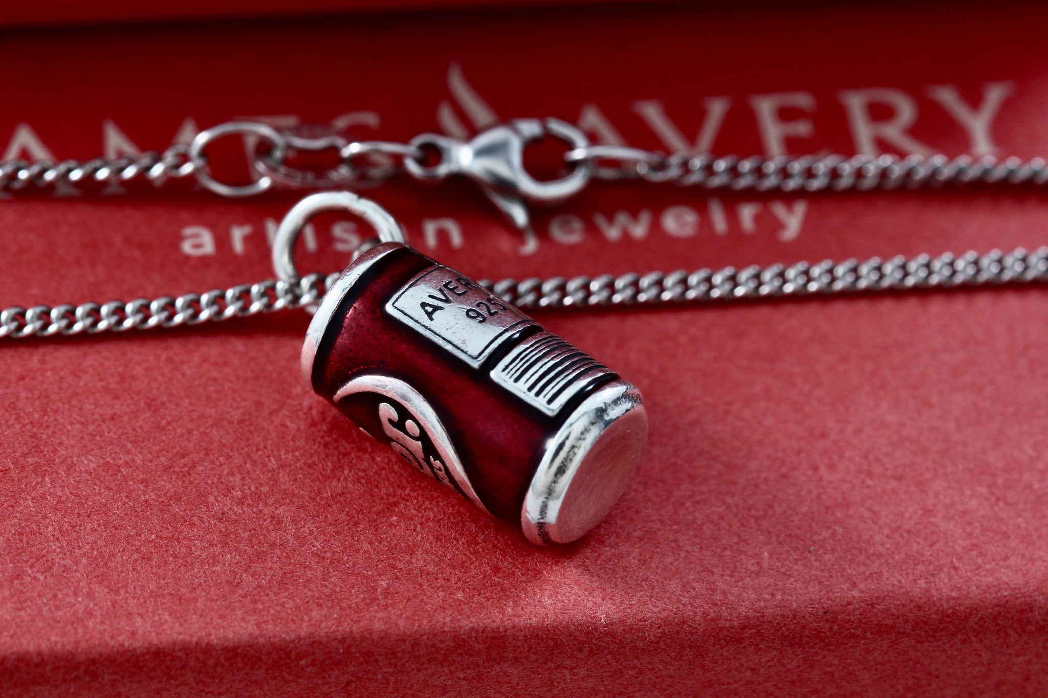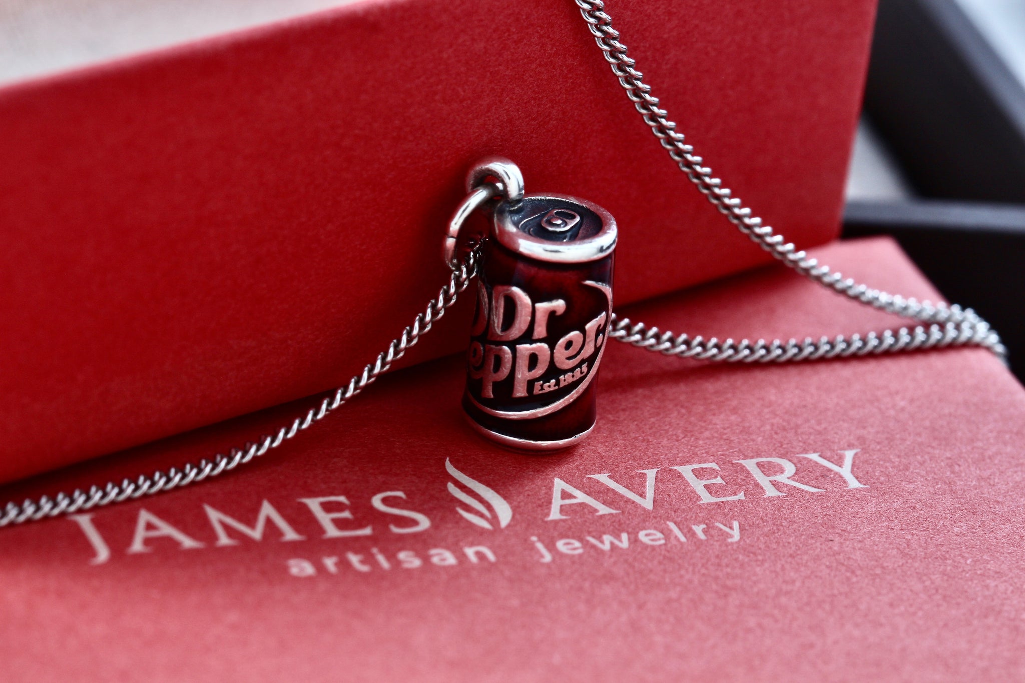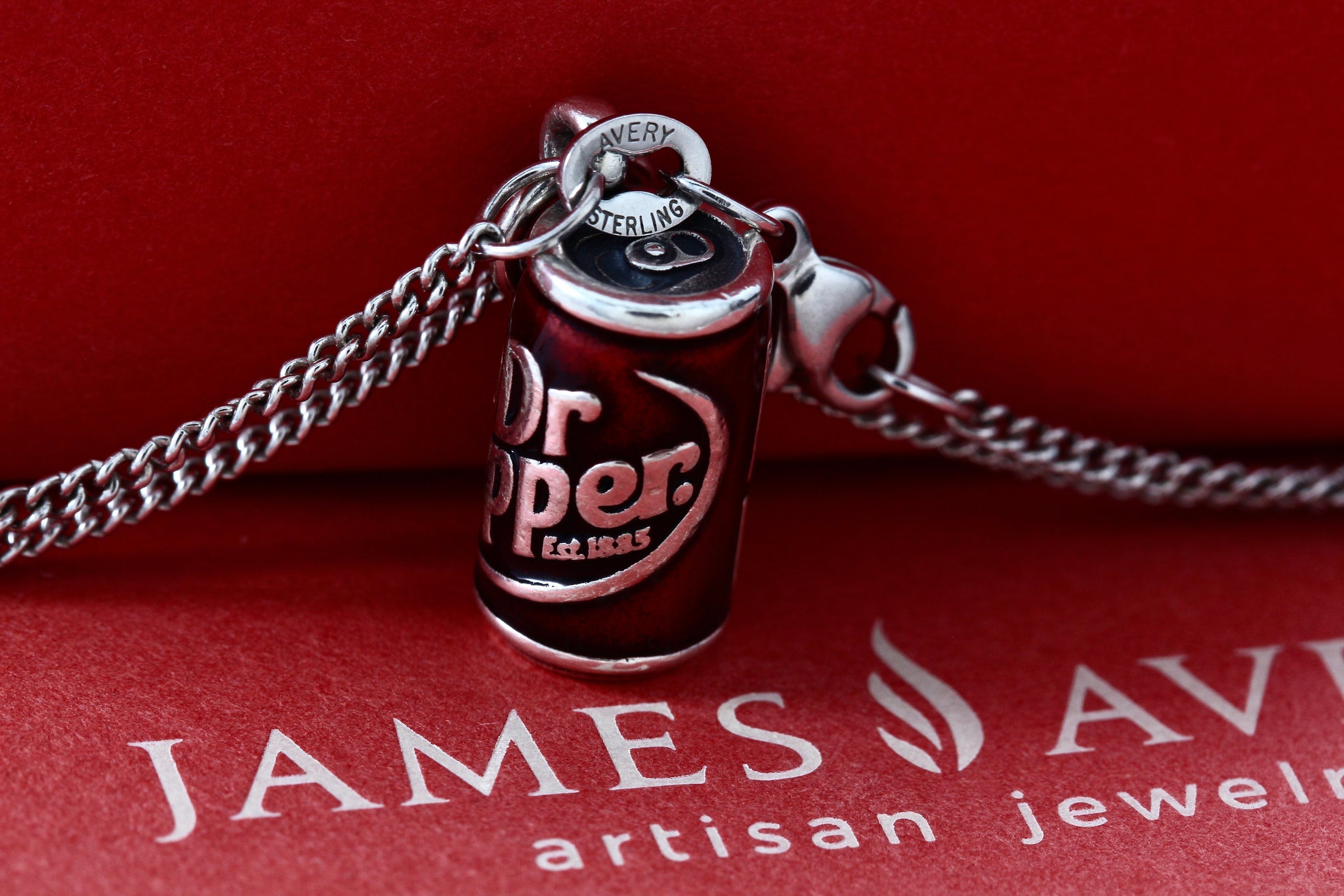 James Avery Sterling Silver Enamel Dr. Pepper Can Charm Pendant 17" Chain Necklace