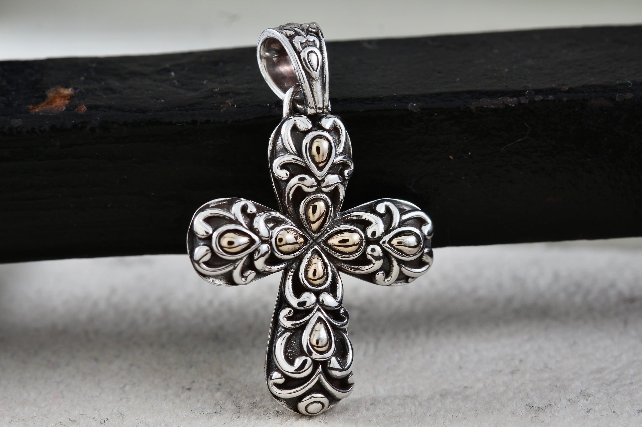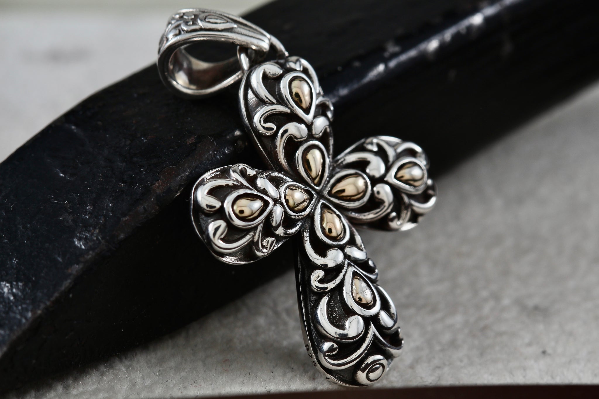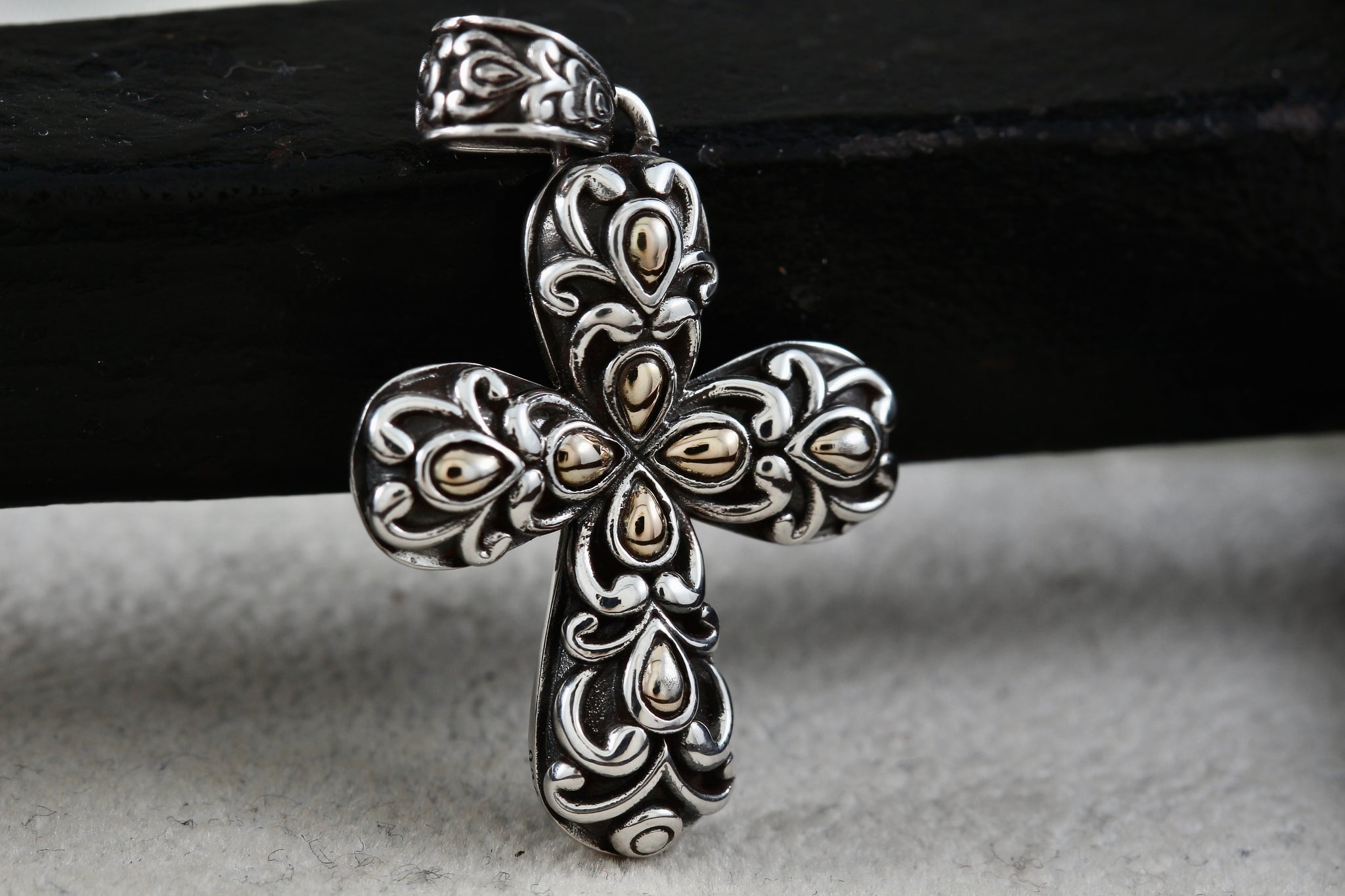 John Hardy Sterling Silver & 14k Yellow Gold Cross 1.5" Pendant