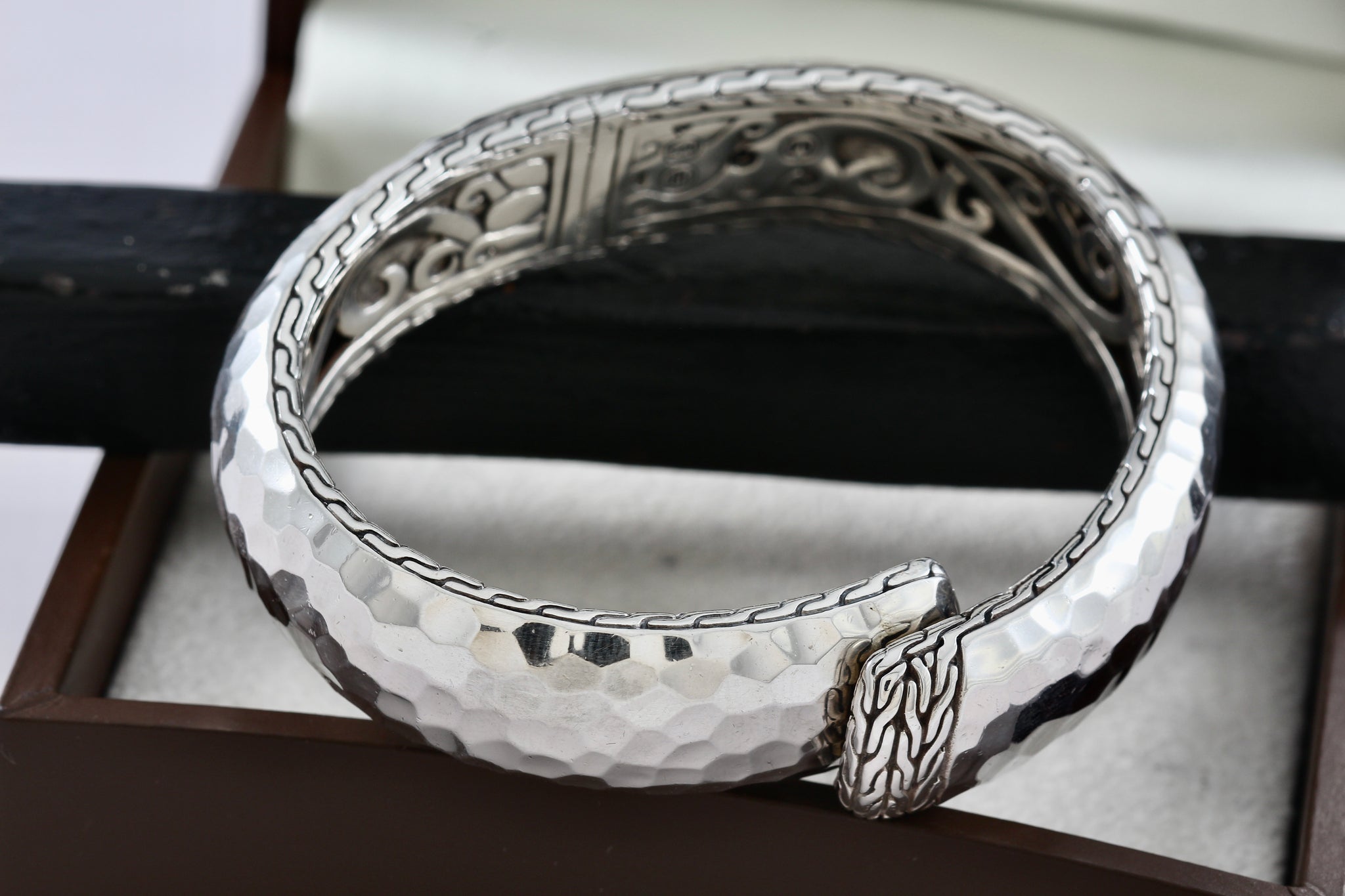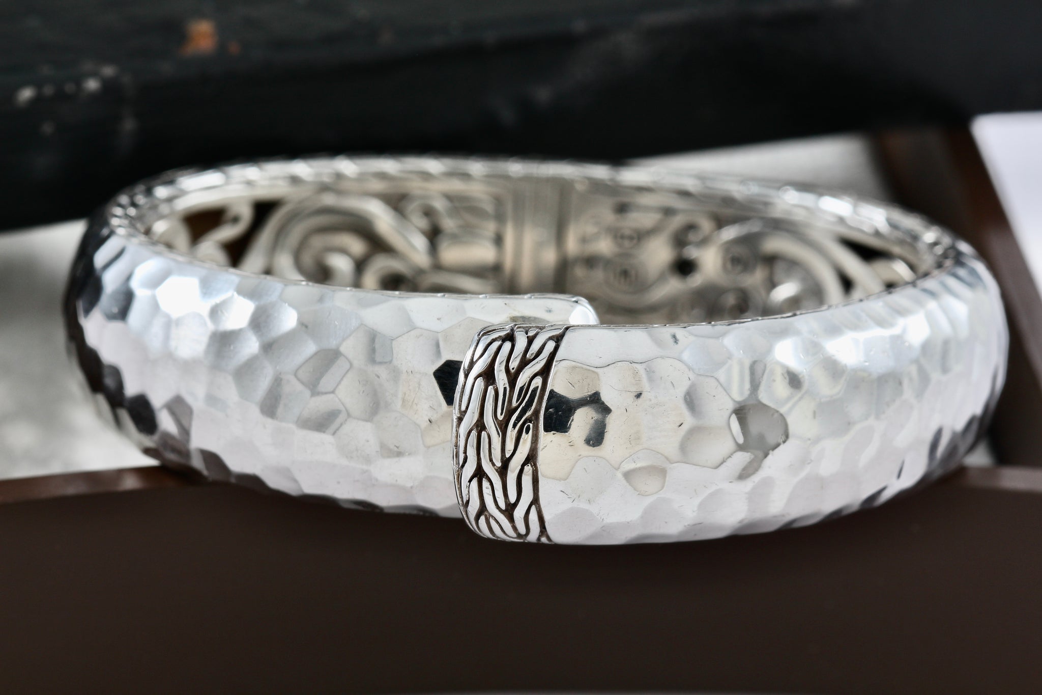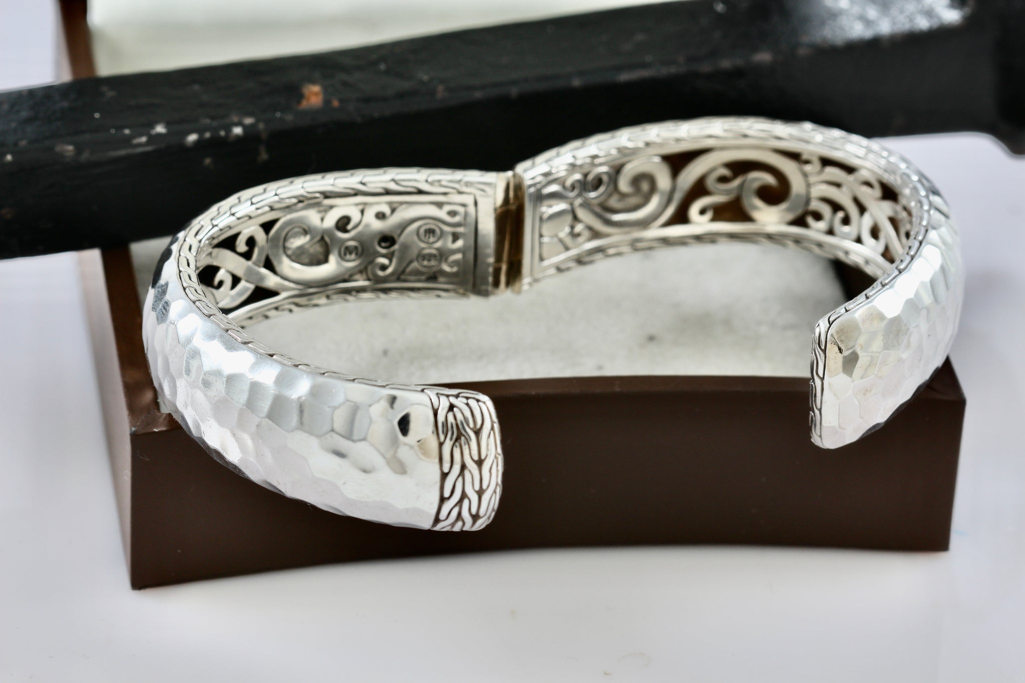 John Hardy Sterling Silver Medium Hammered Double Hinged Bangle Cuff Bracelet