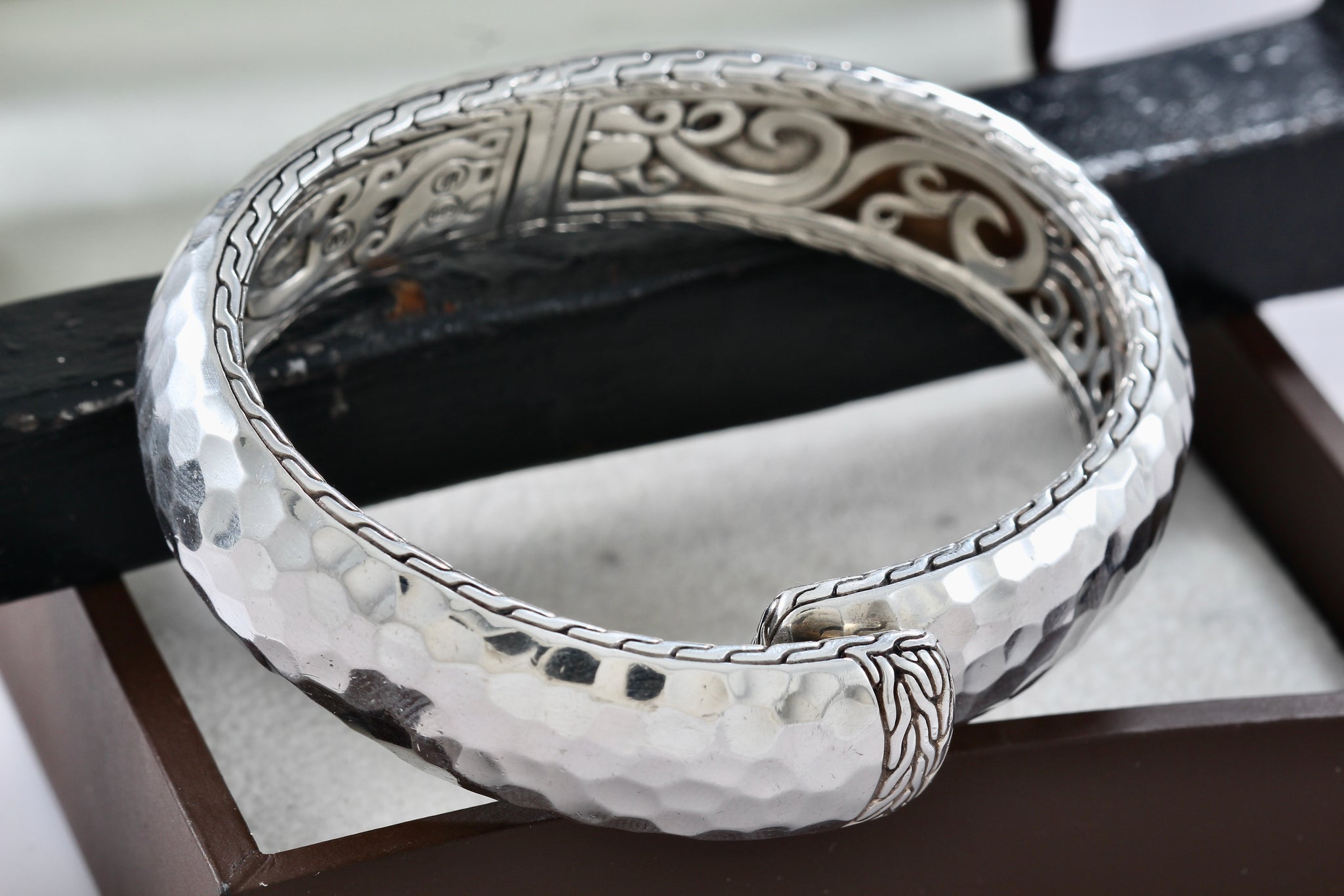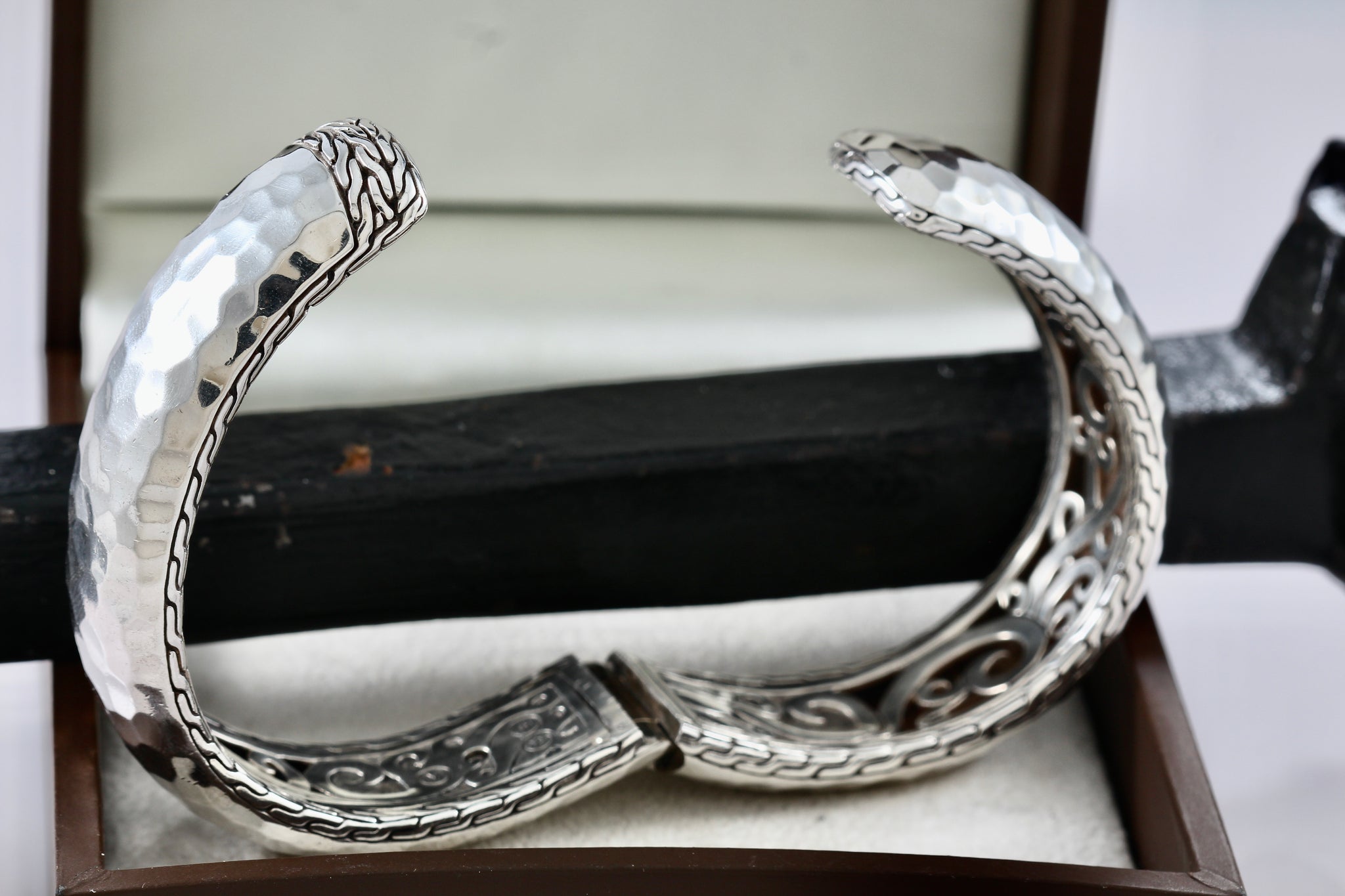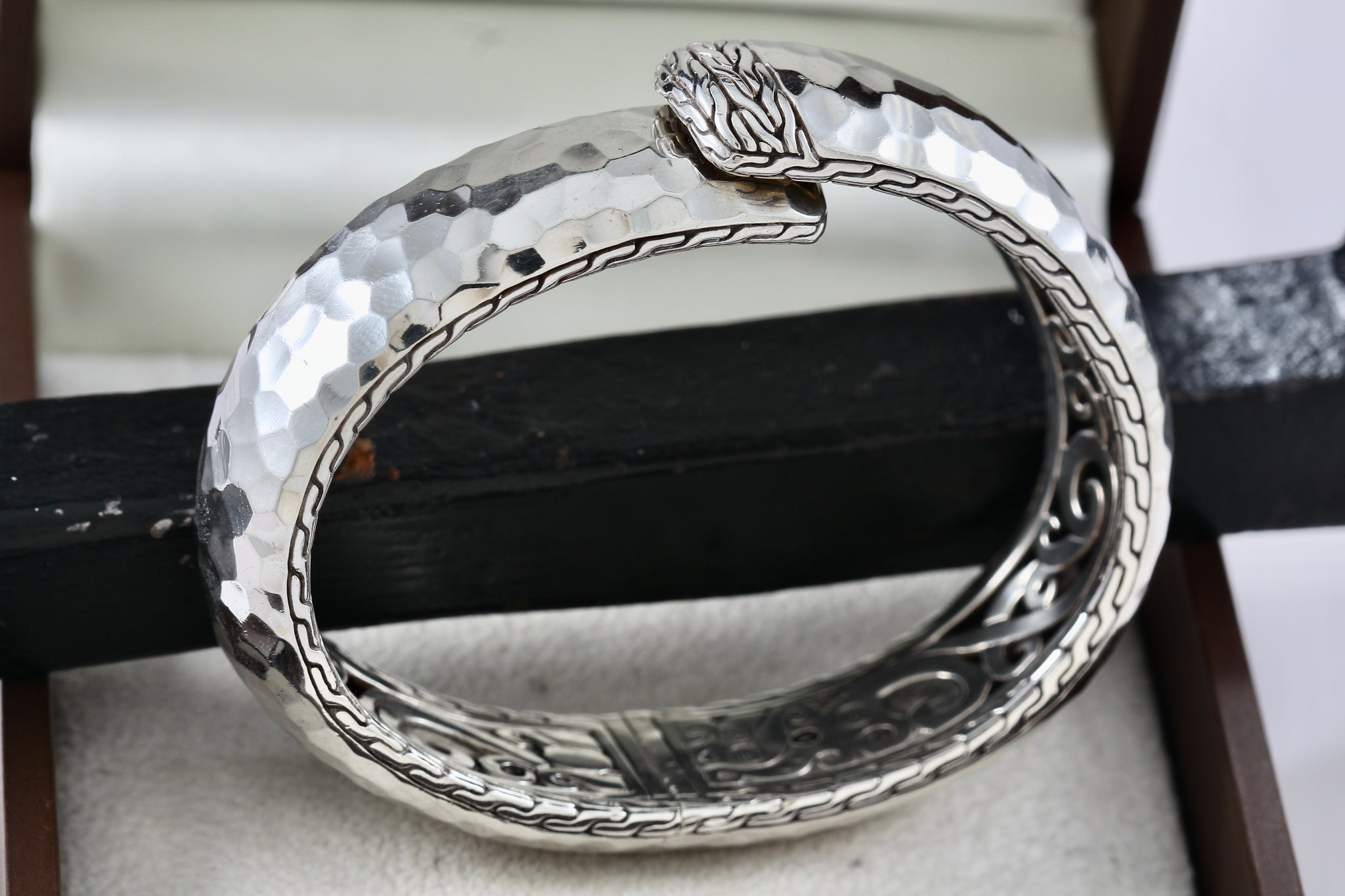 John Hardy Sterling Silver Medium Hammered Double Hinged Bangle Cuff Bracelet