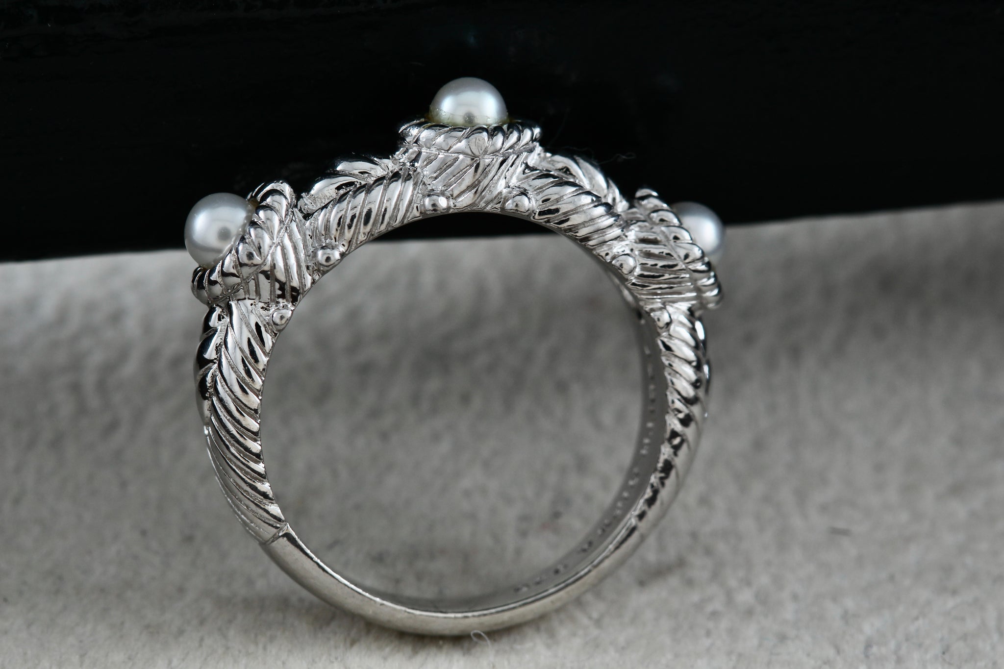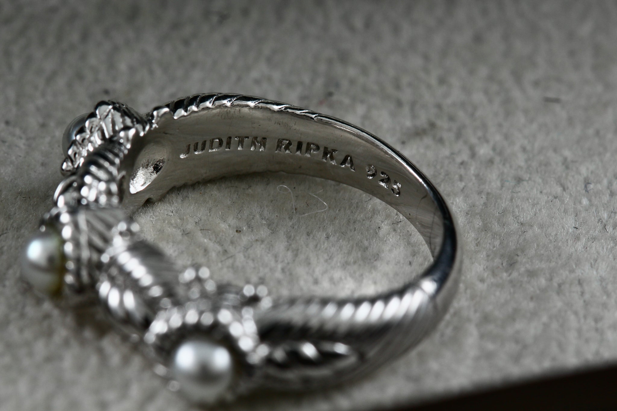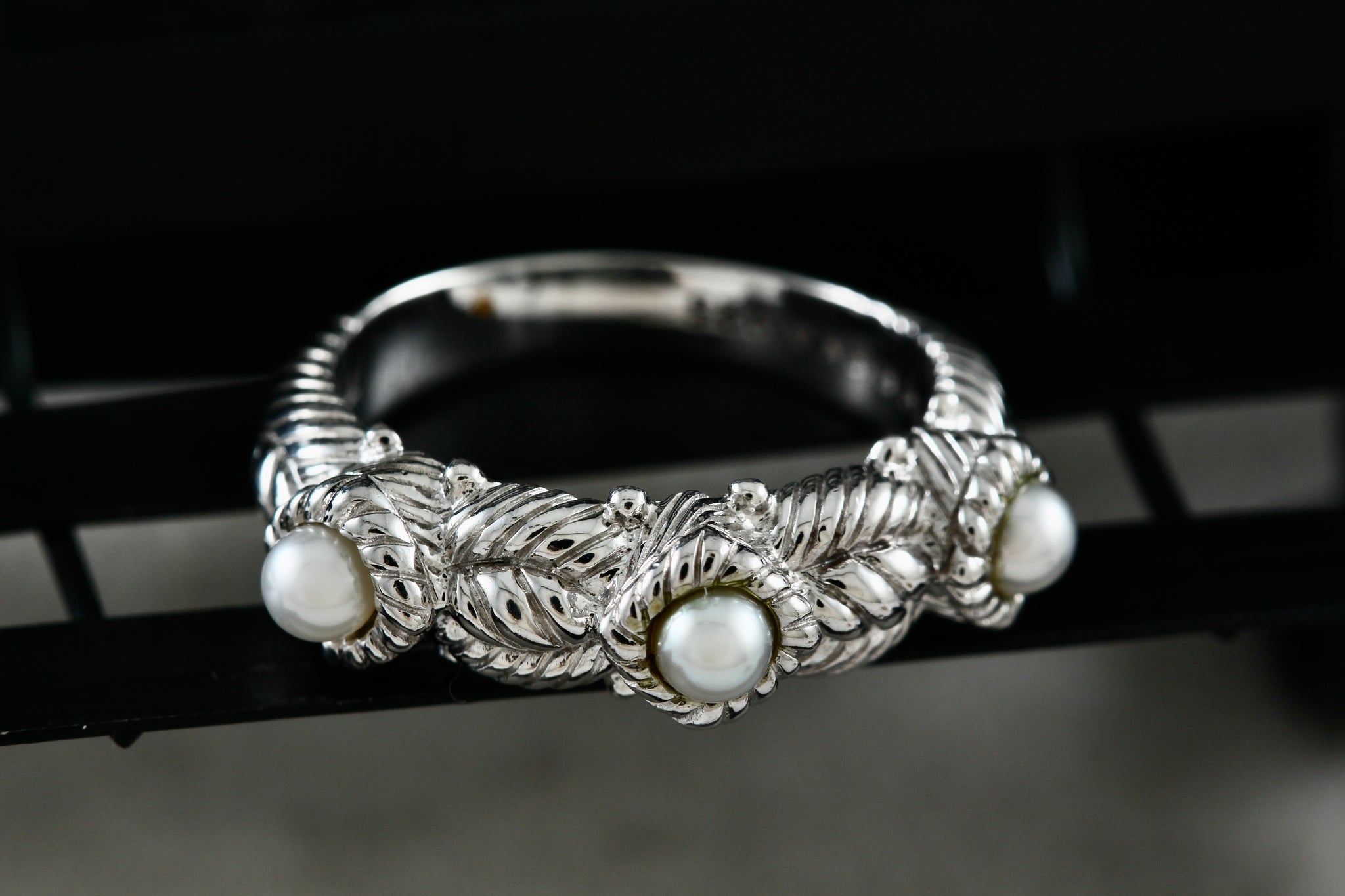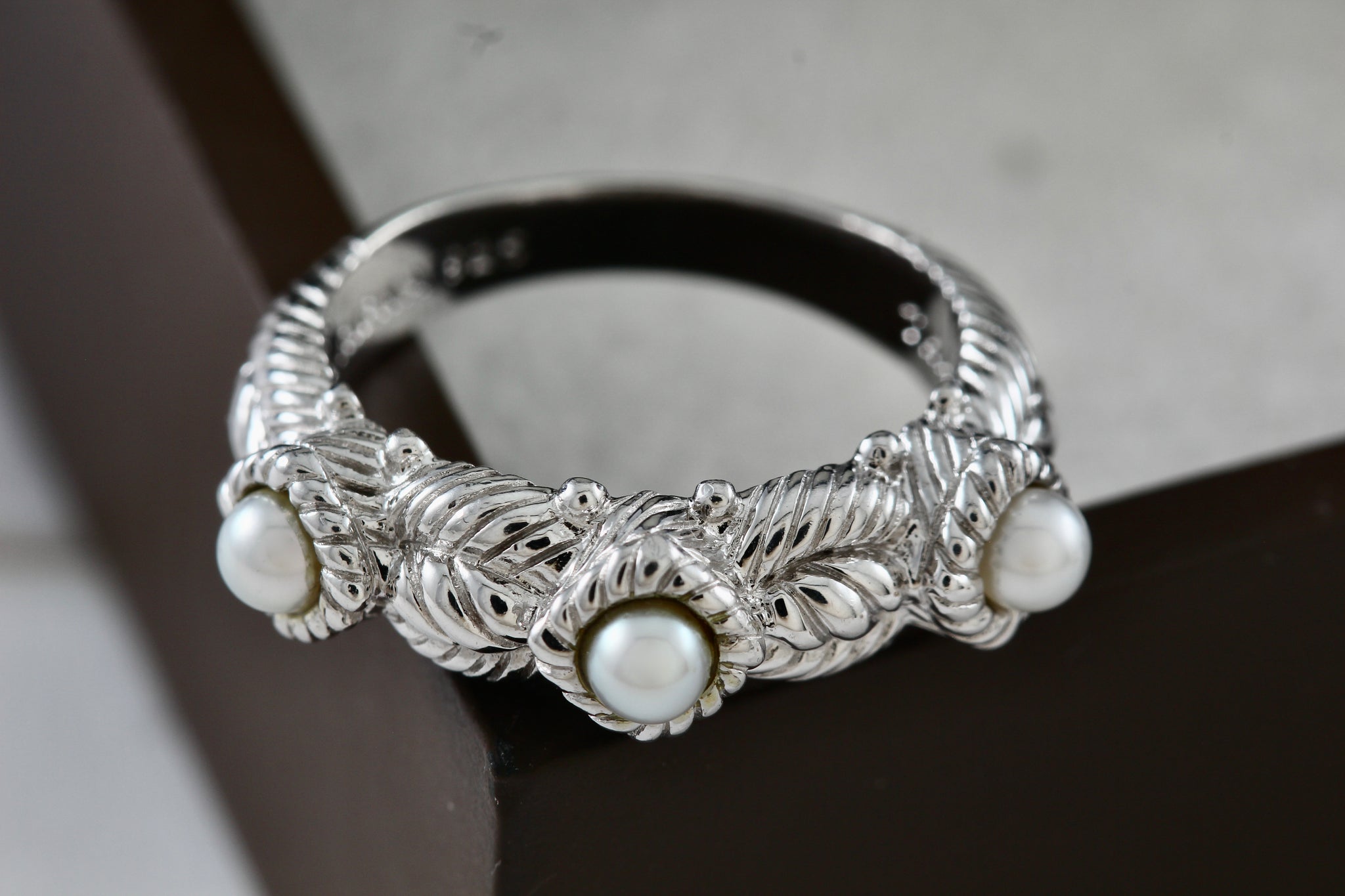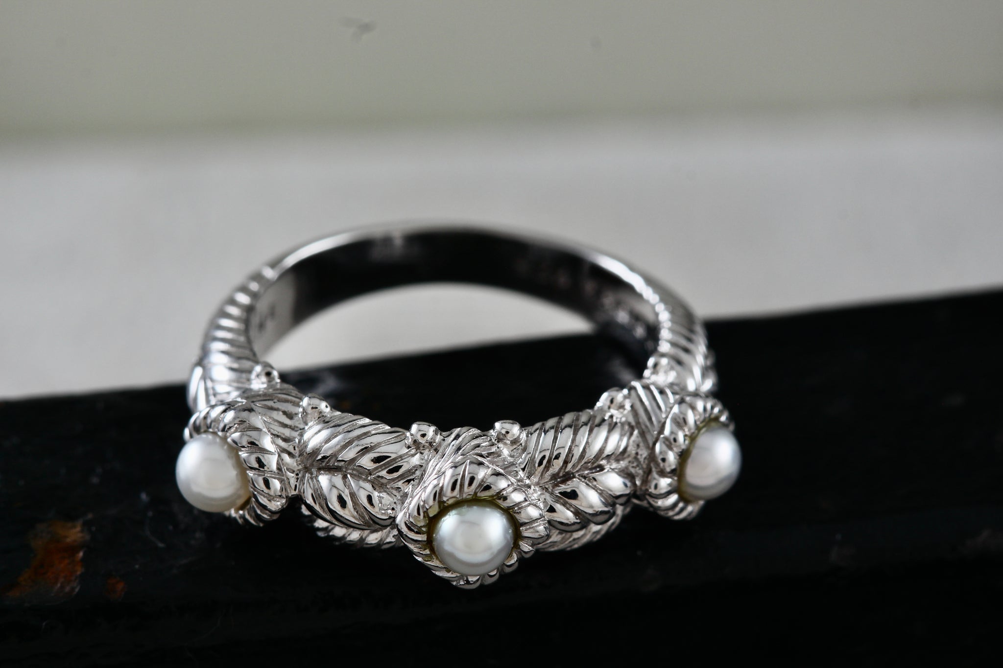 Judith Ripka Sterling Silver 3 Station 3mm Pearl Stacking Band Ring Size 7