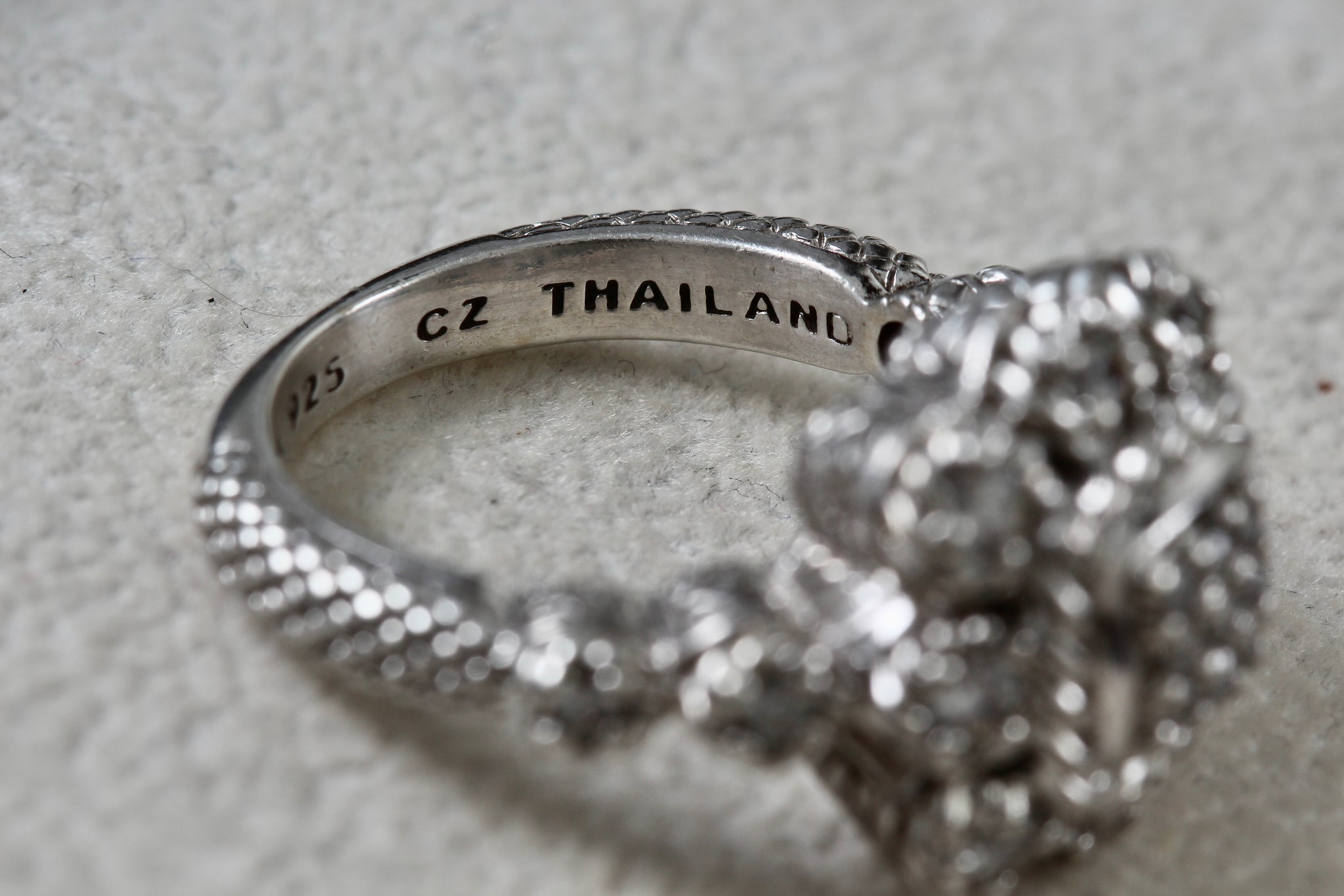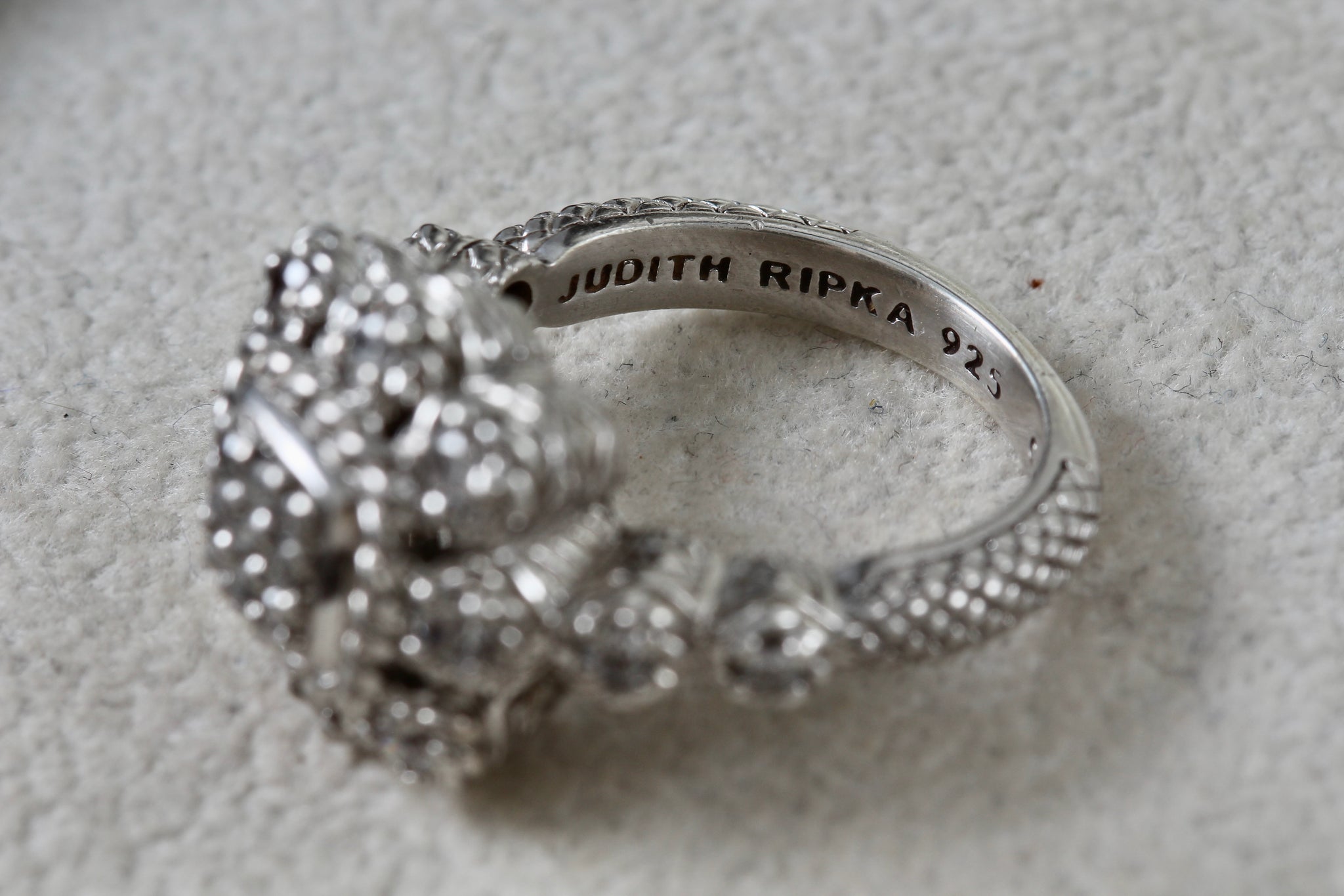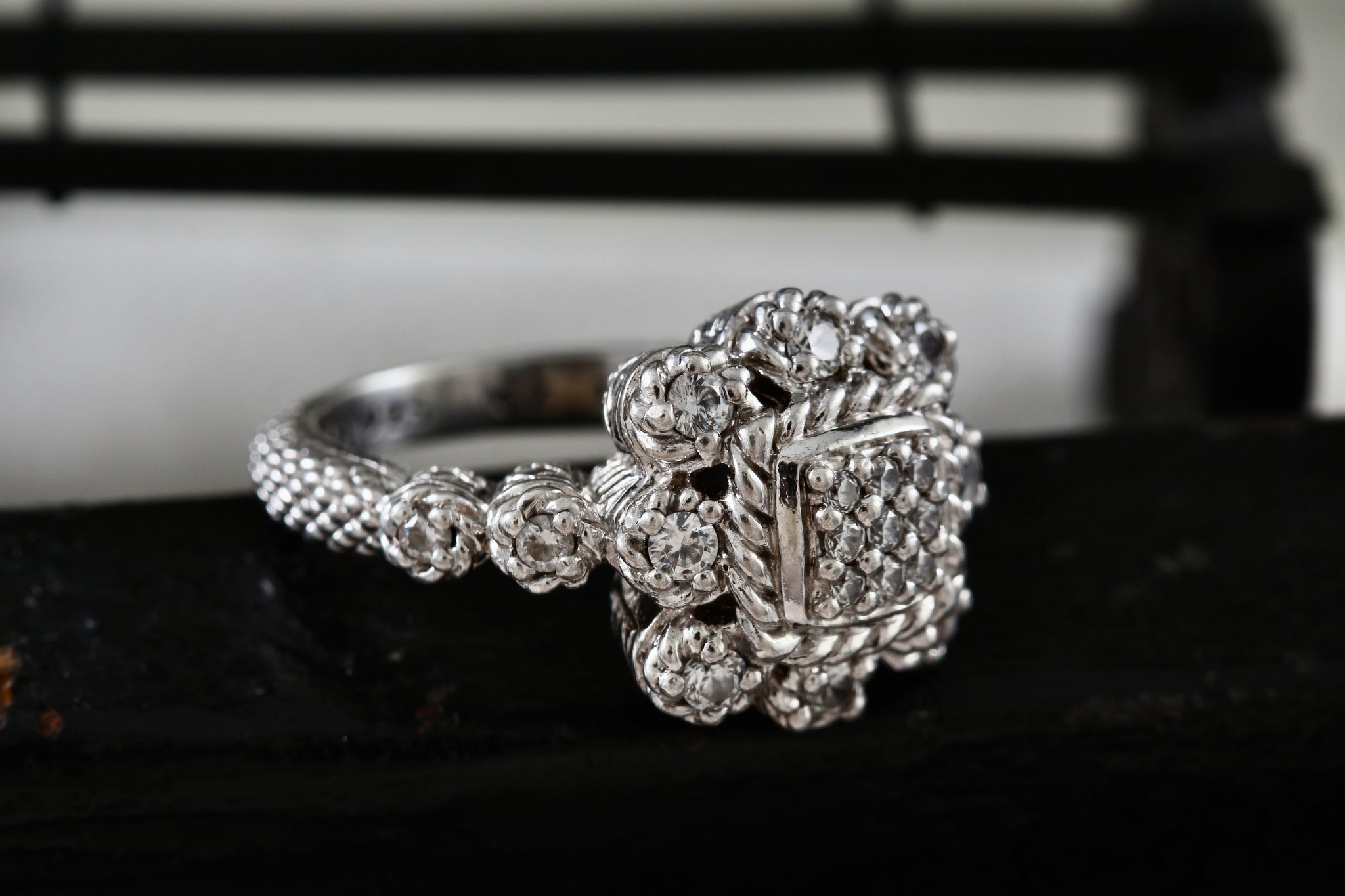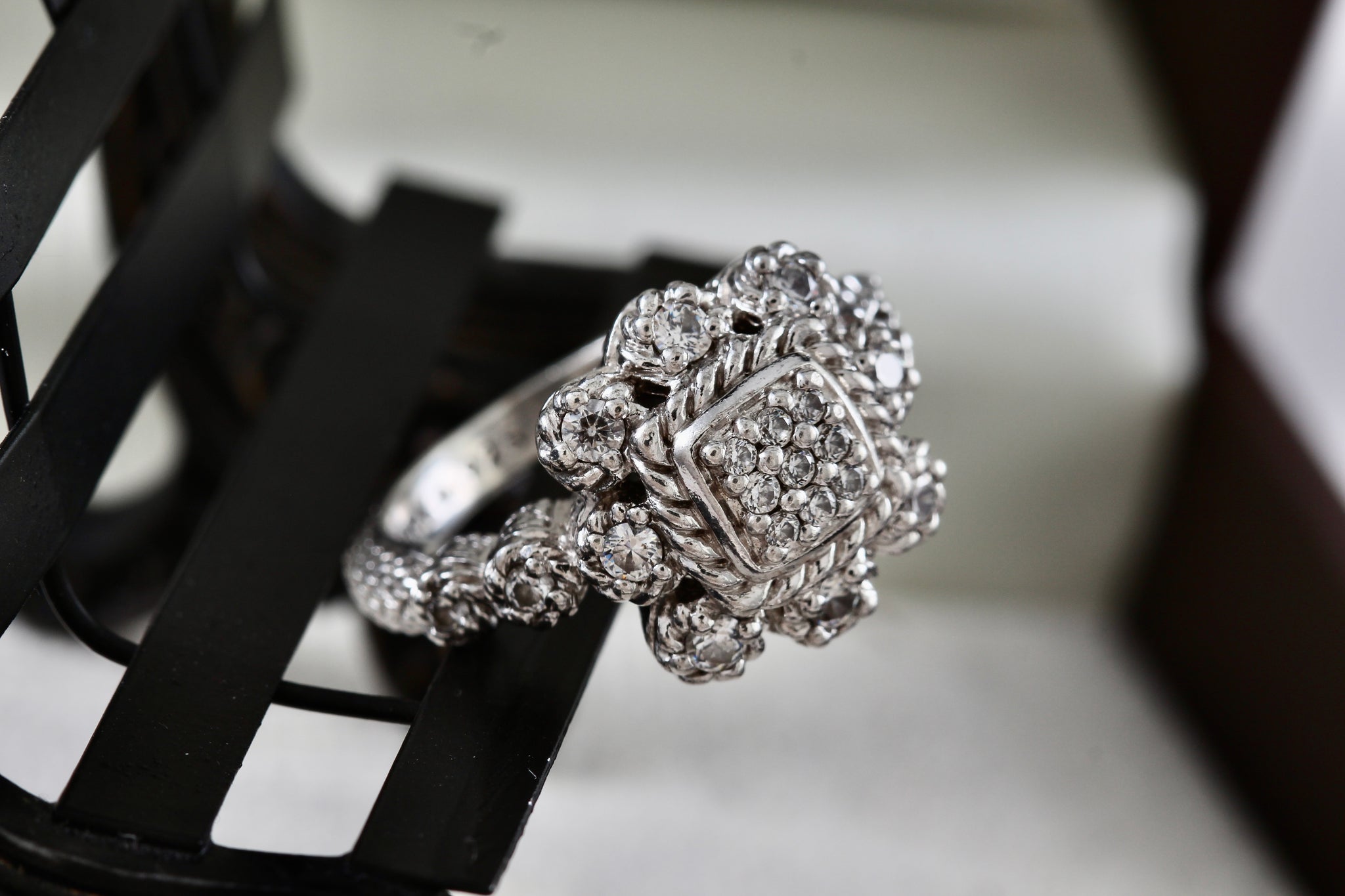 Judith Ripka Sterling Silver CZ Pave Cluster Cable Cocktail Band Ring Size 7