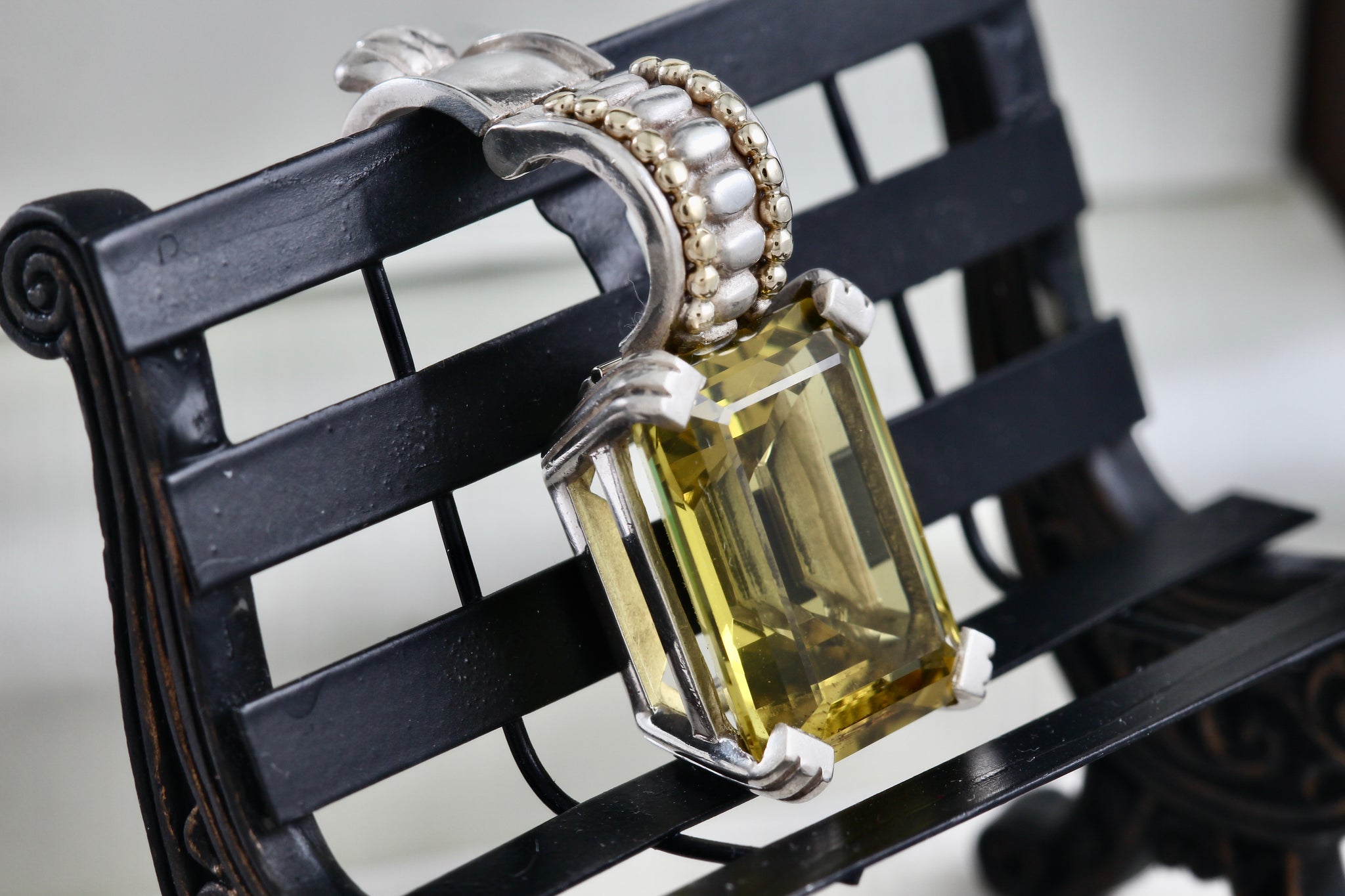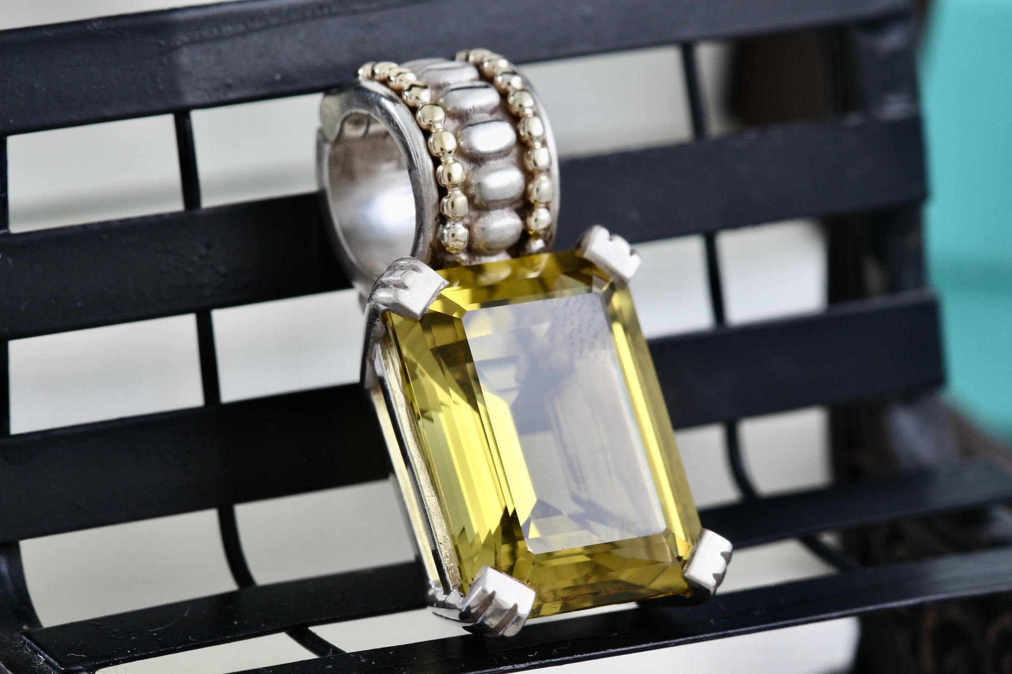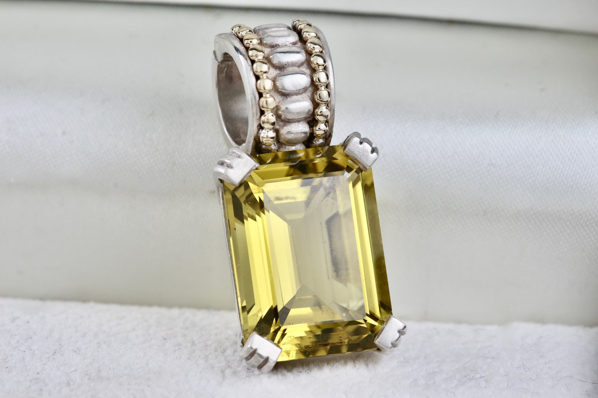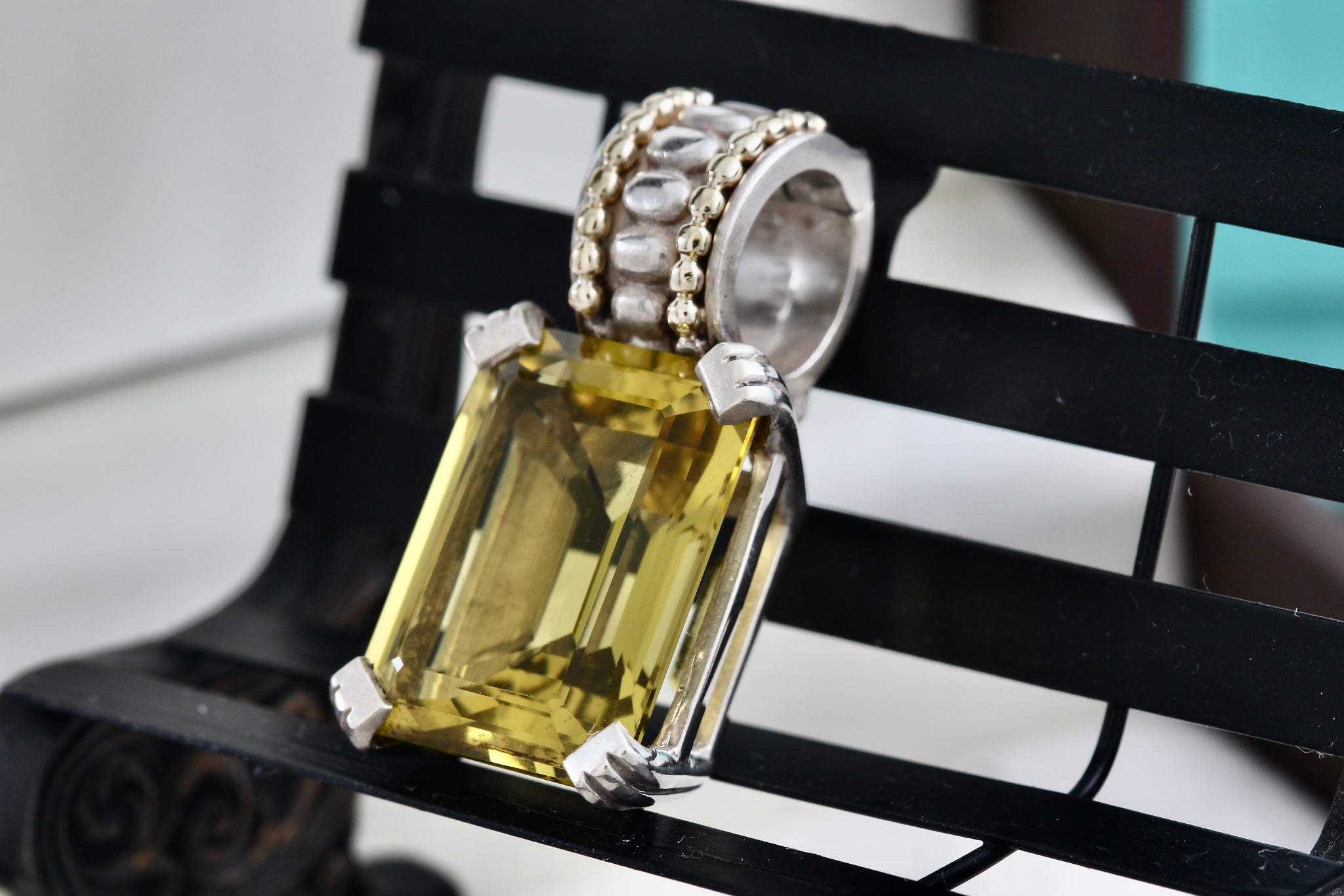 Lagos Caviar 18k Gold & Silver Lemon Quartz Hinged Bale Large Enhancer Pendant