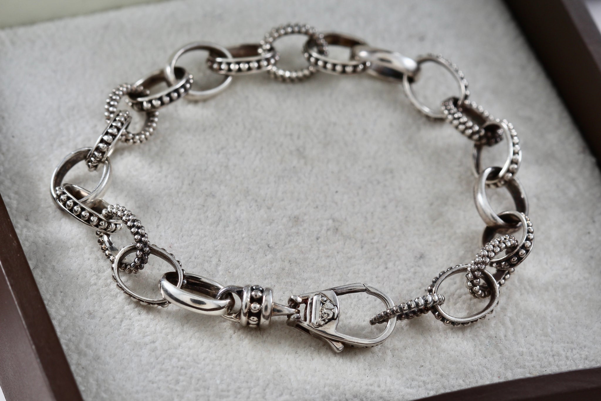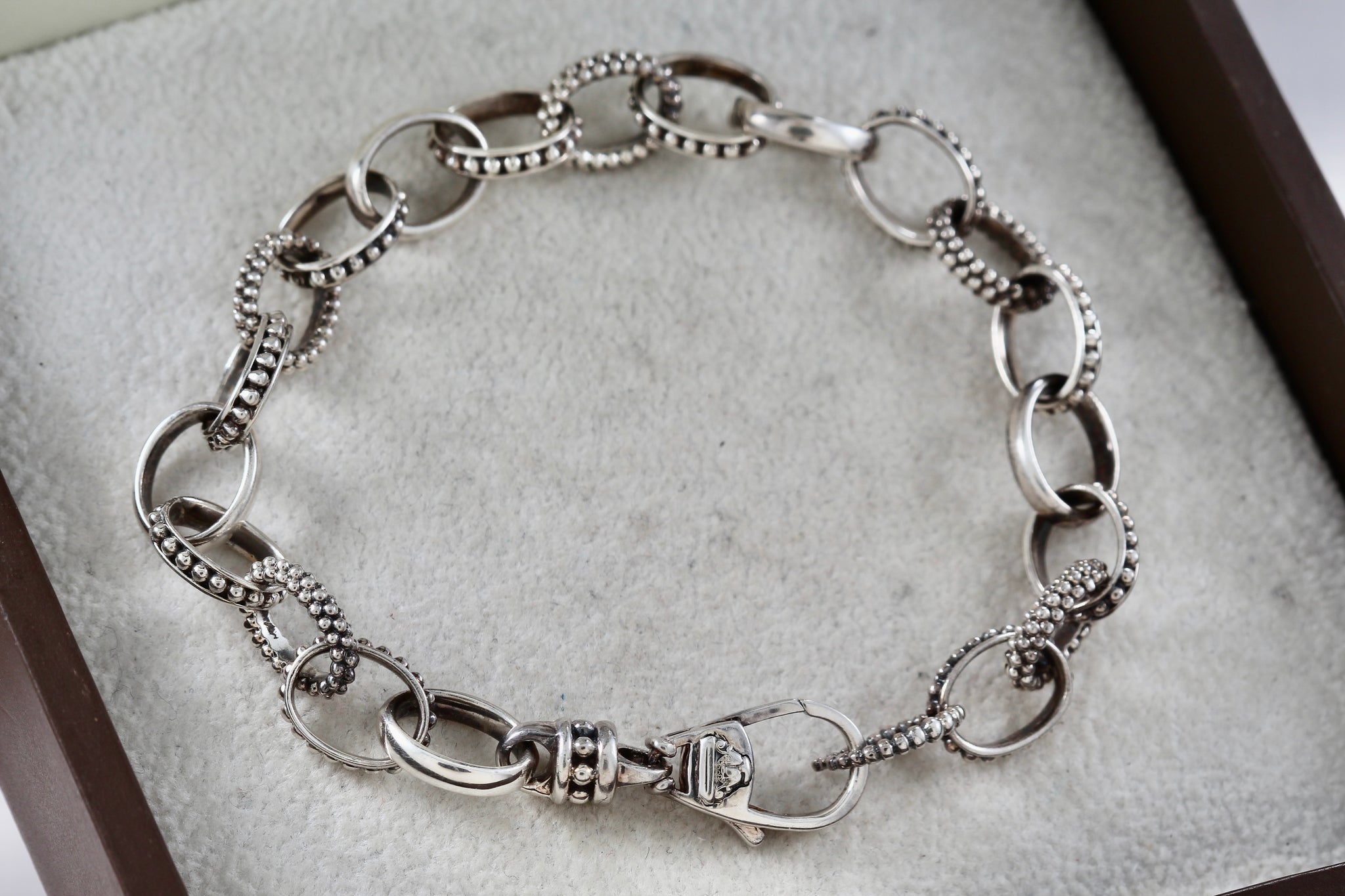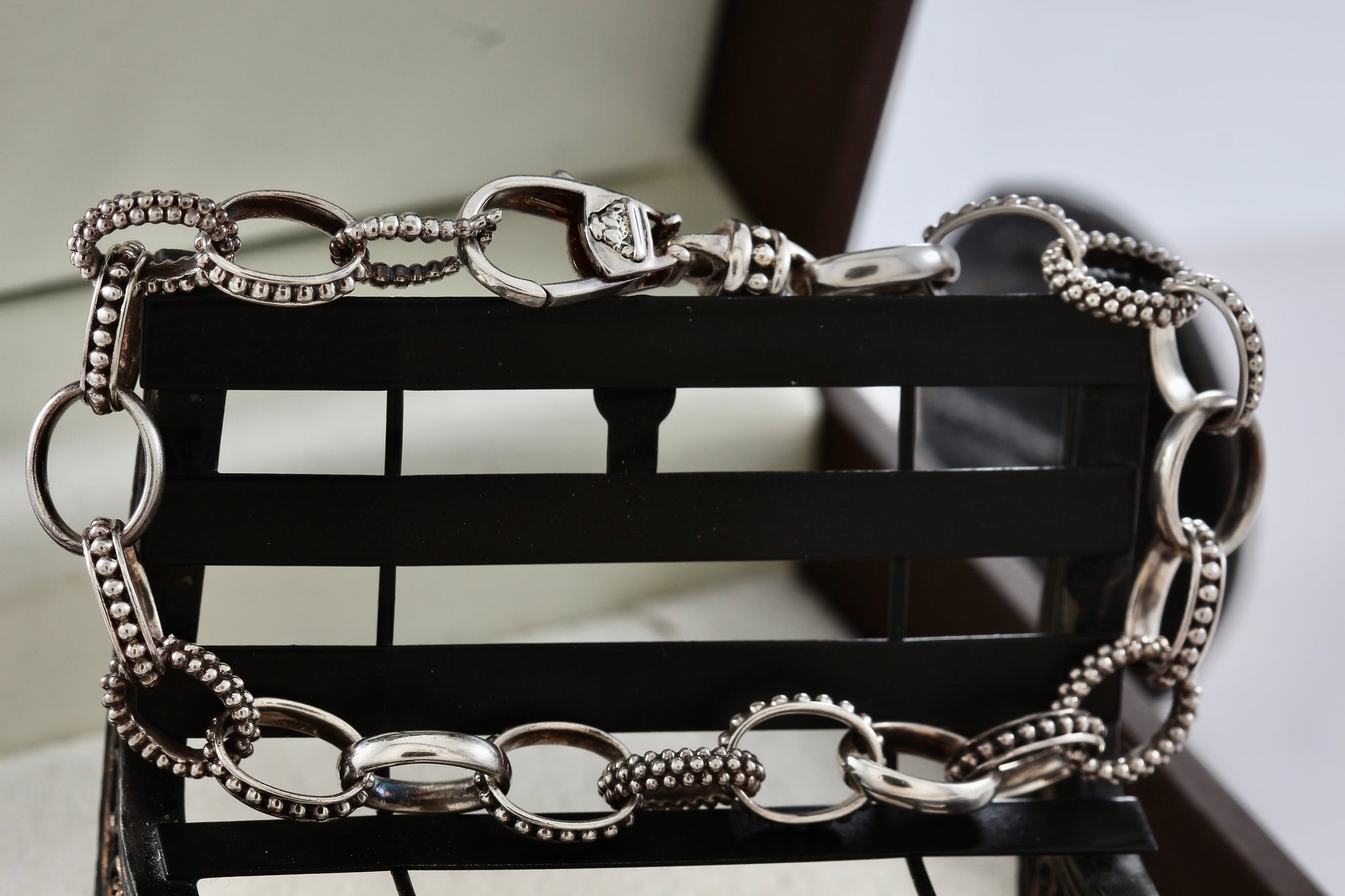 Lagos Womens Sterling Silver Signature Caviar Alternating Link 7.5" Bracelet