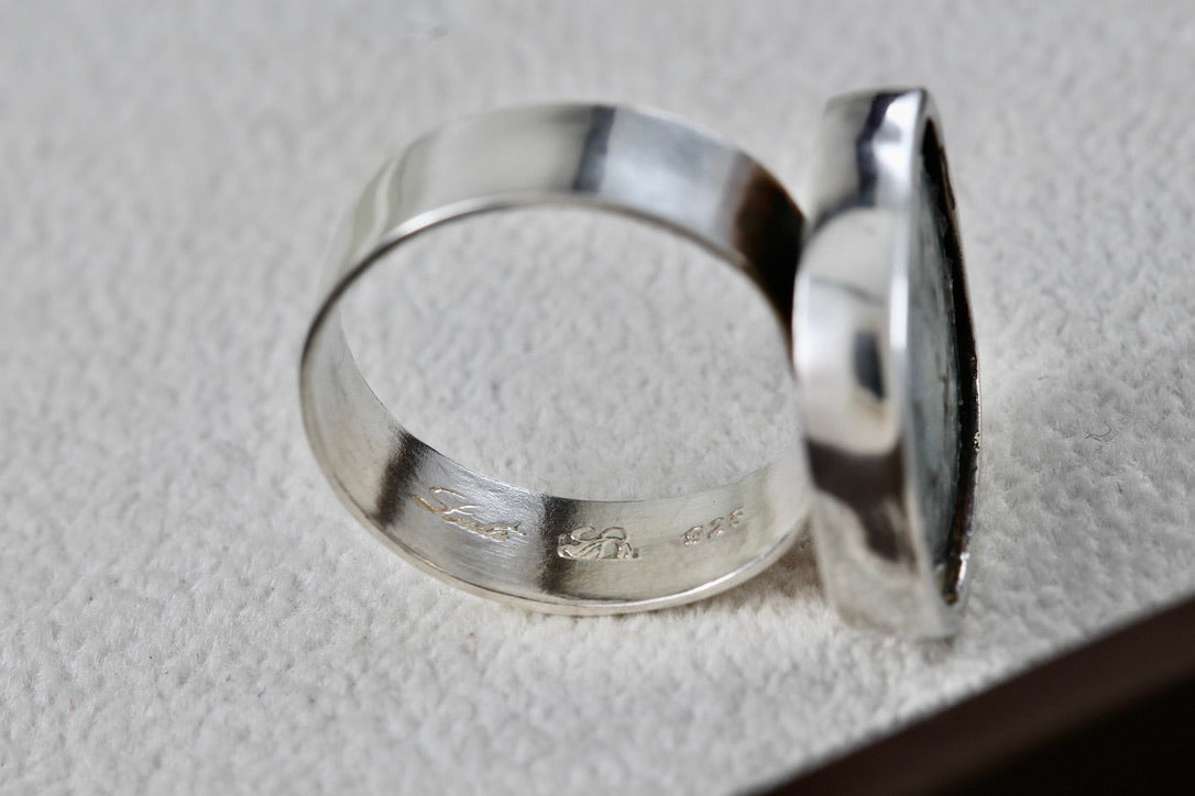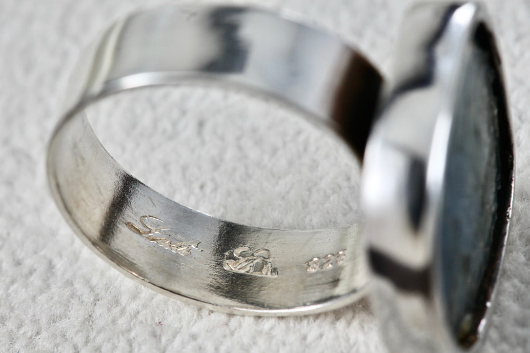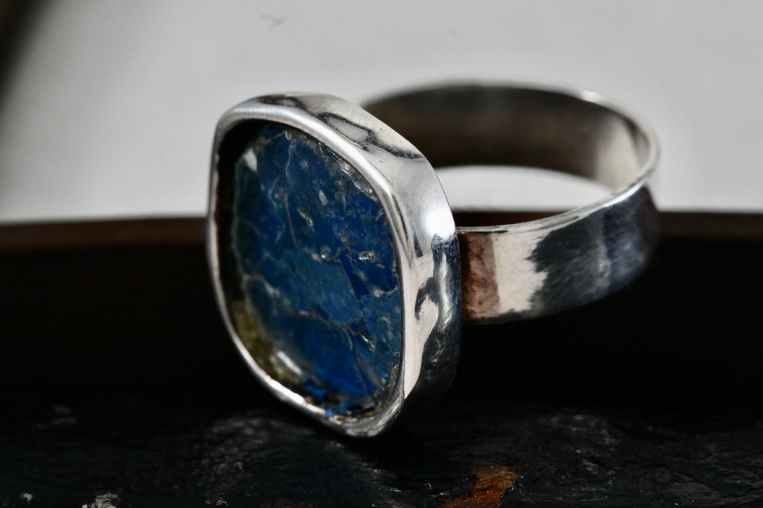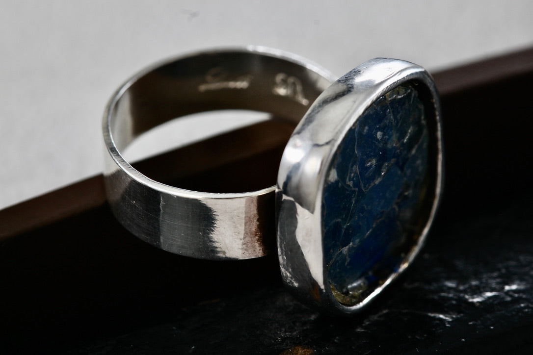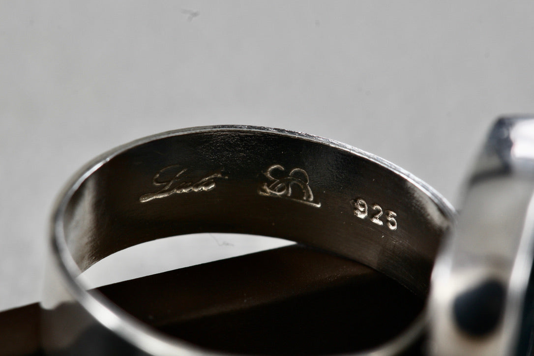 Sterling Silver Handmade Square Cracked Blue Glass Ring Signed SR