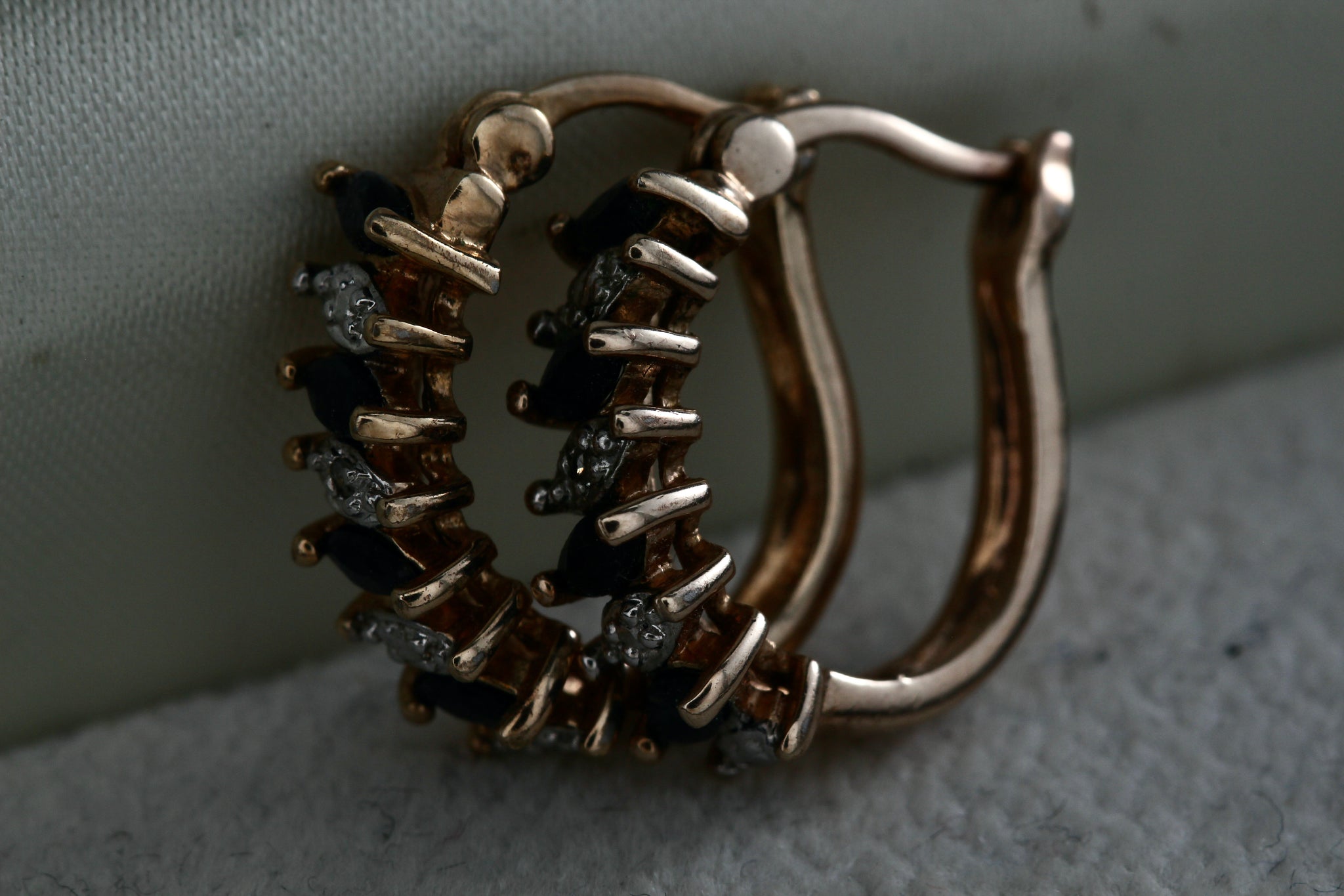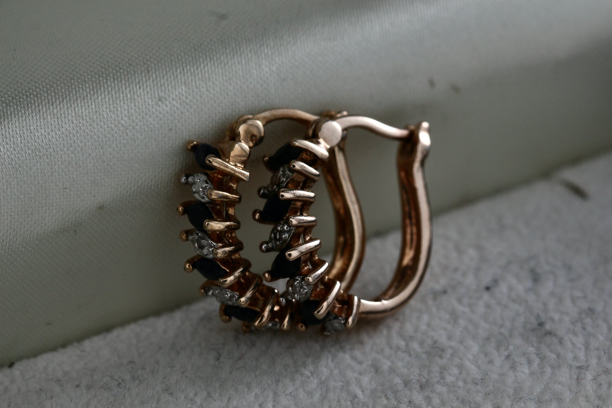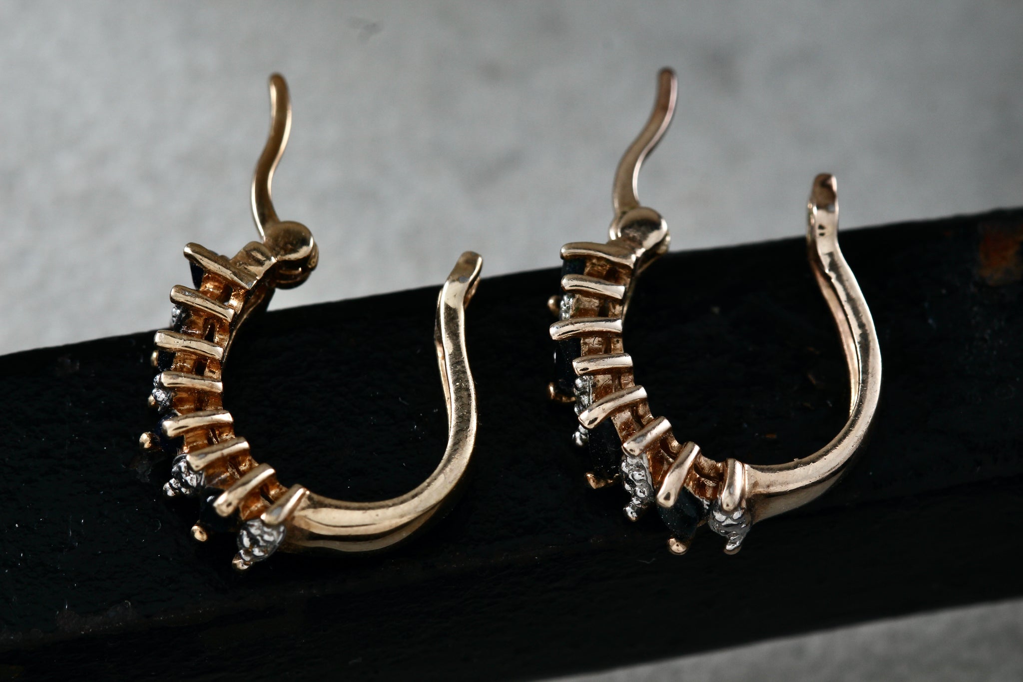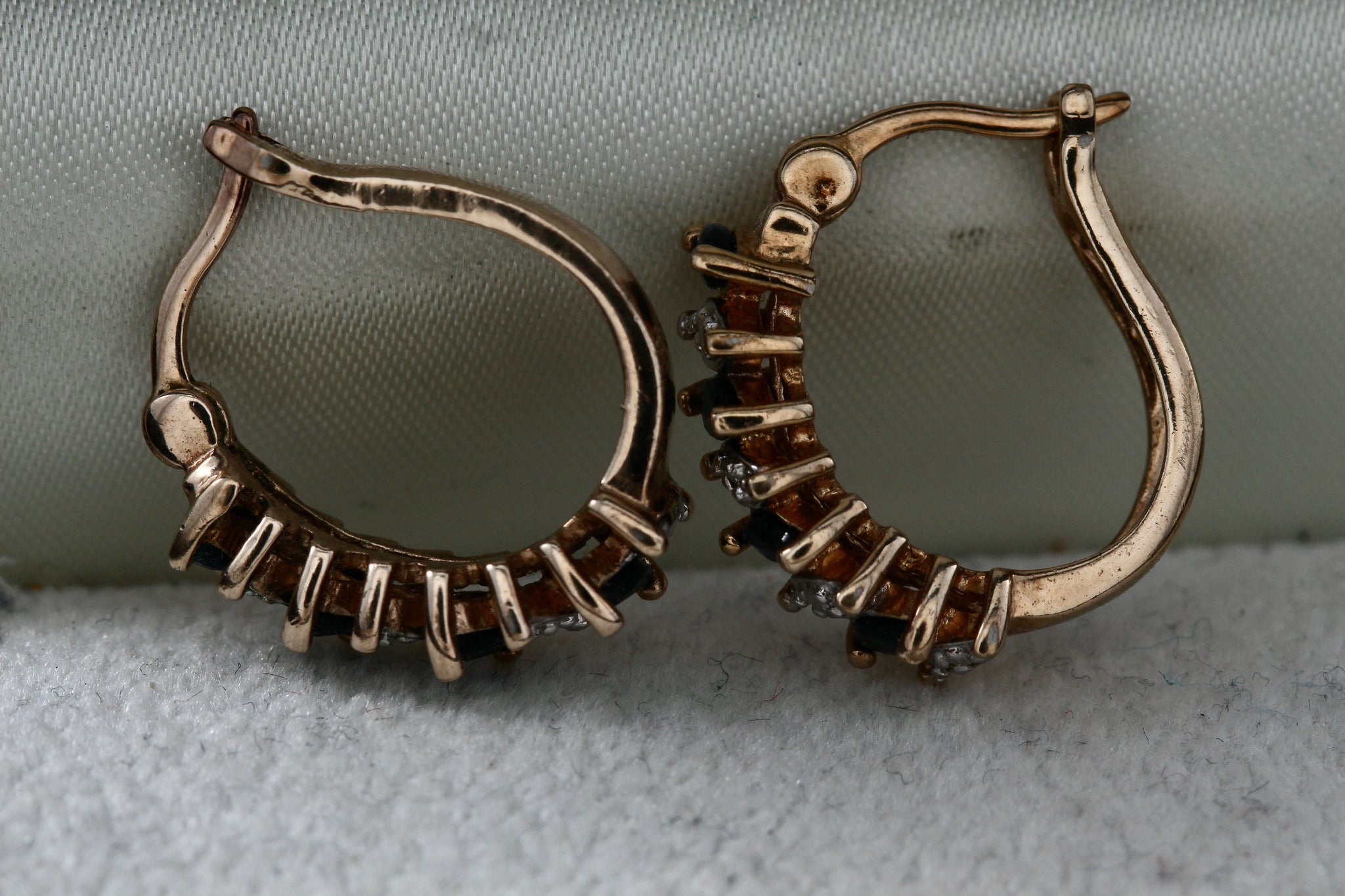 Sterling Silver Vermeil Blue Sapphire CZ Diamonds Huggie Hoop Cocktail Earrings