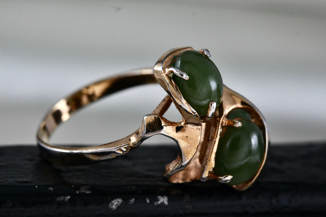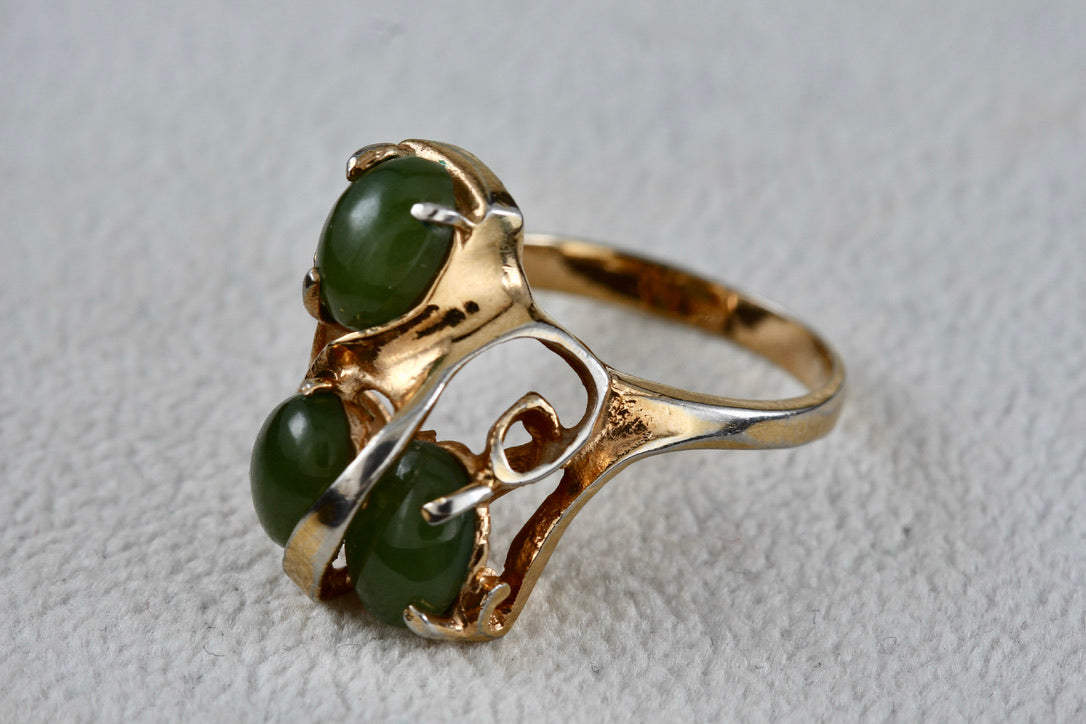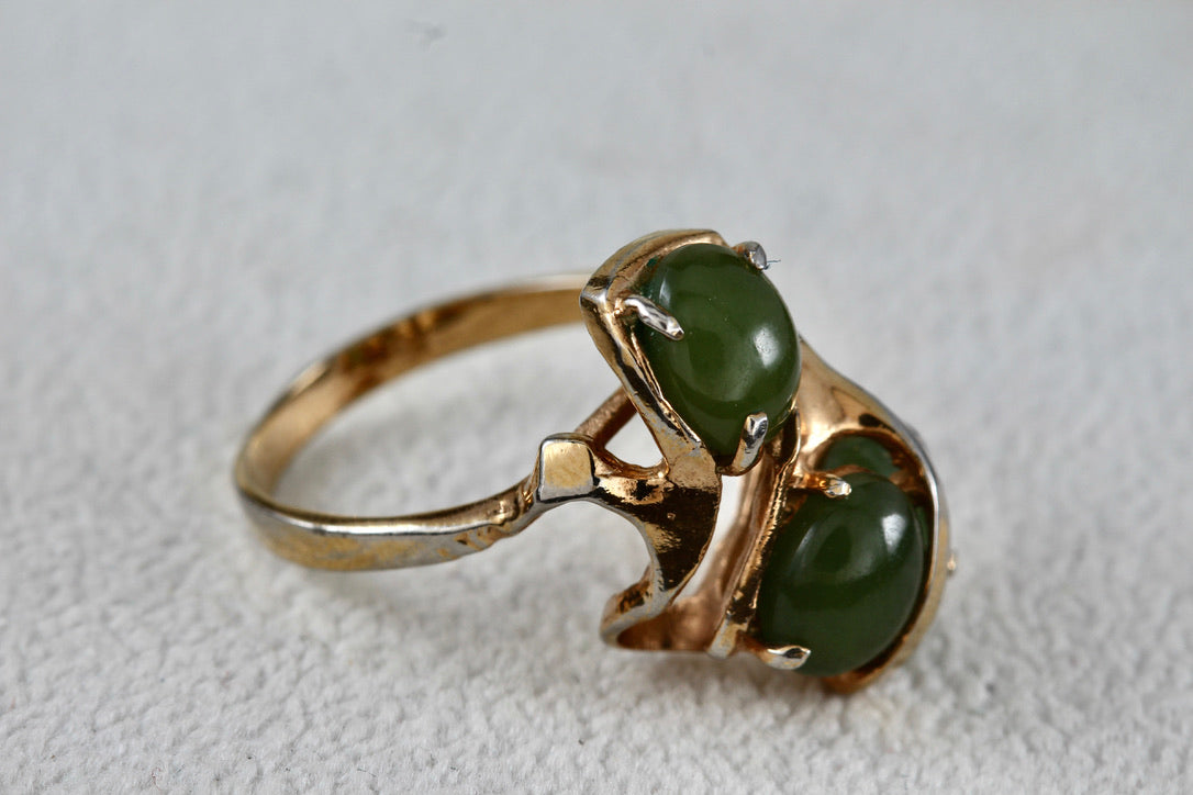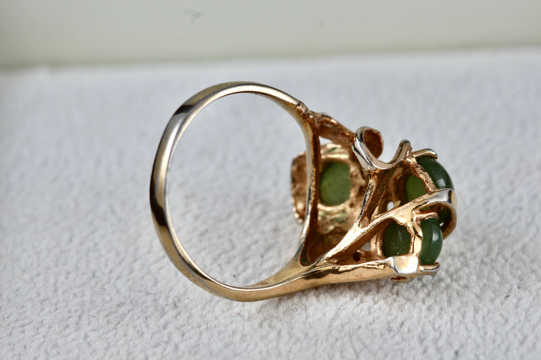 Sterling Silver Vermeil SS Green Oval Jade Multi Stones Melt Wrap Ring Size 7