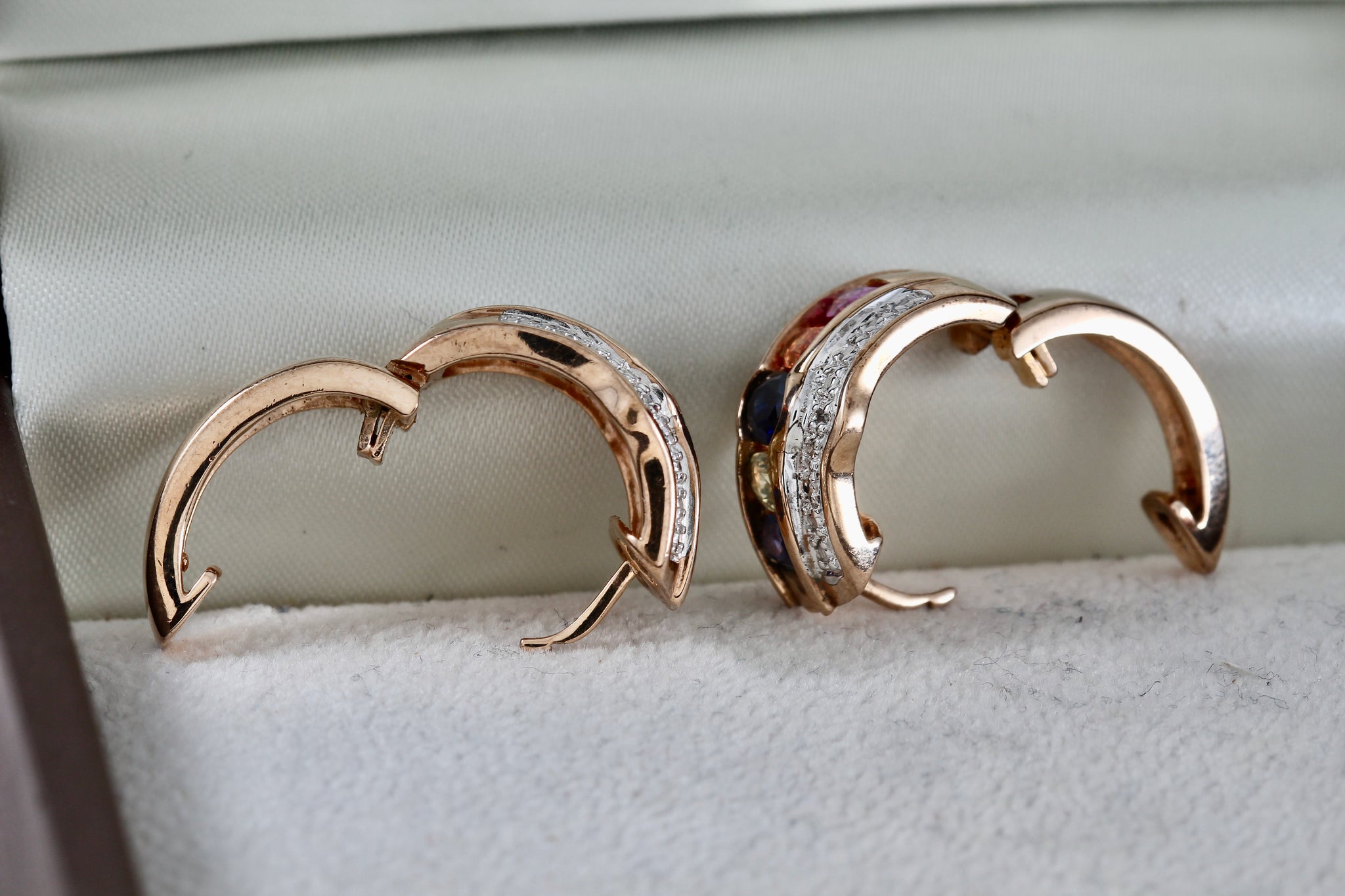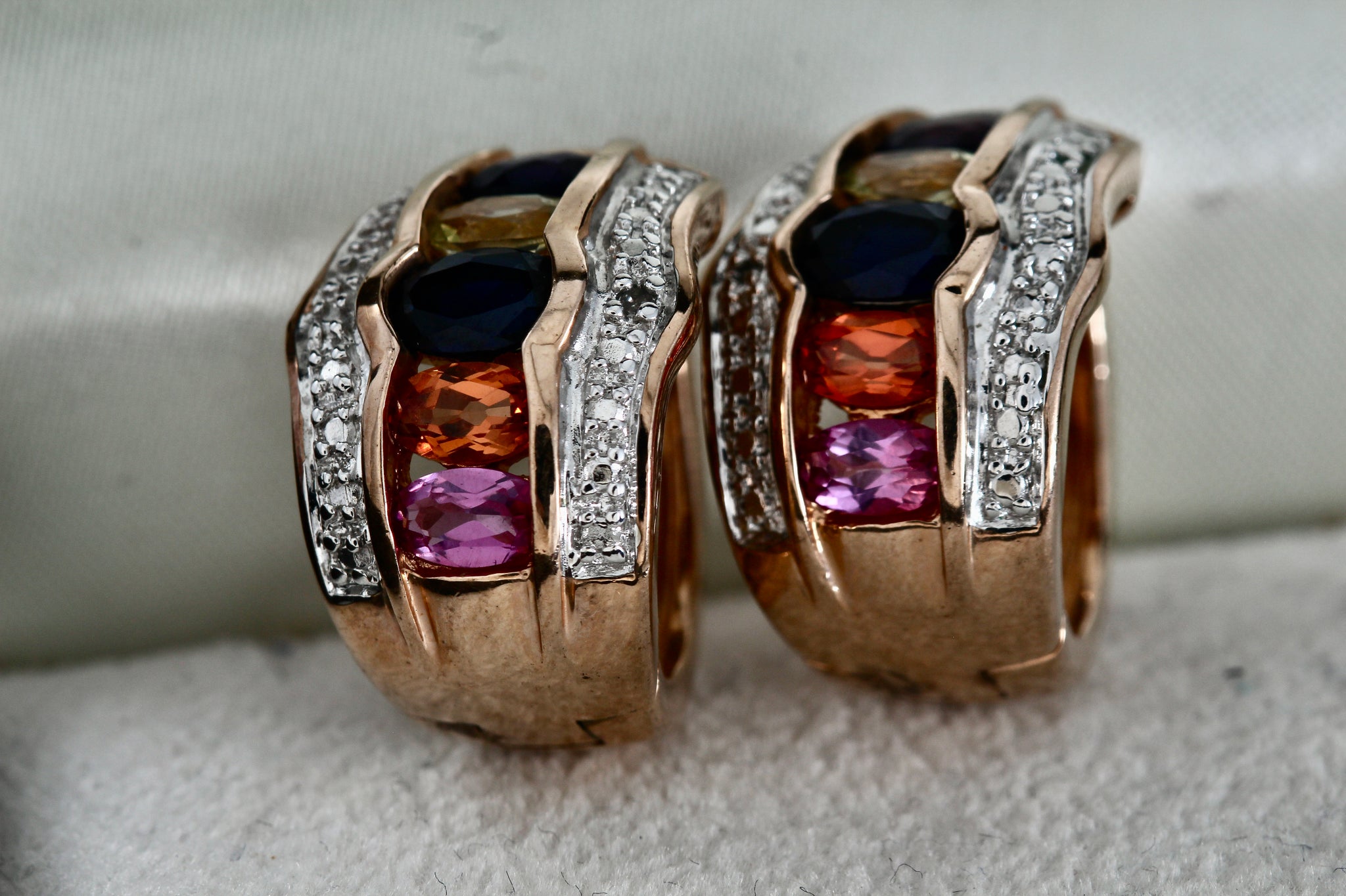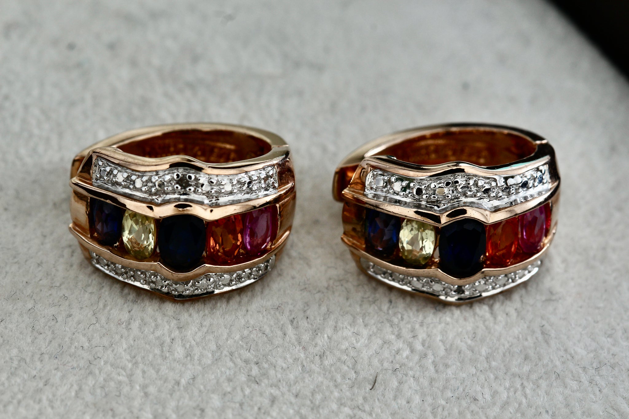 Vermeil Silver Multi CZ Gemstone Wide Chunky Hoop Earrings China