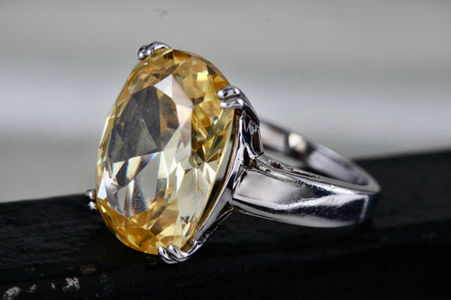 Sterling Silver Large Oval Cushion Cut Citrine Cocktail Ring Size 8
