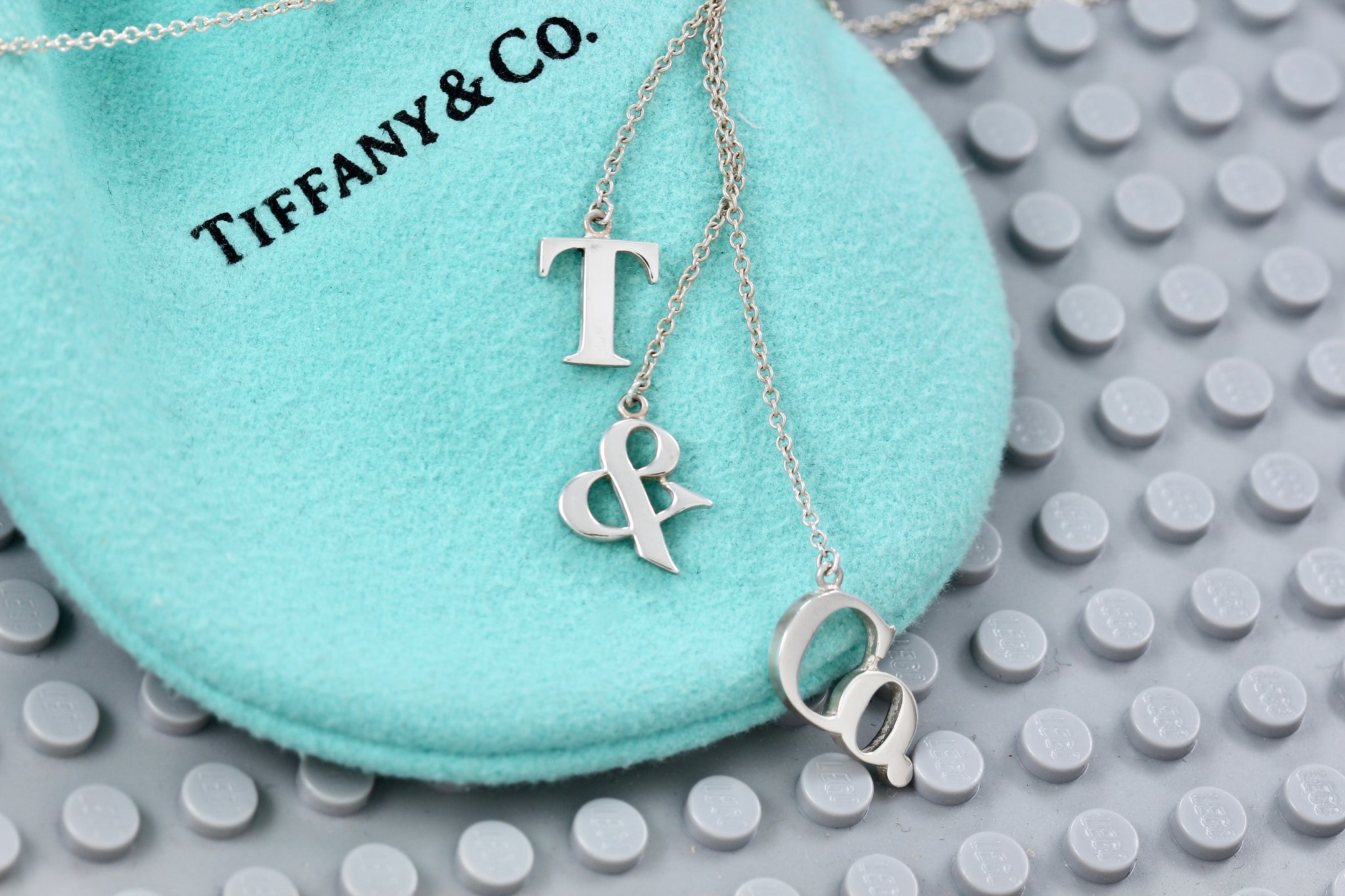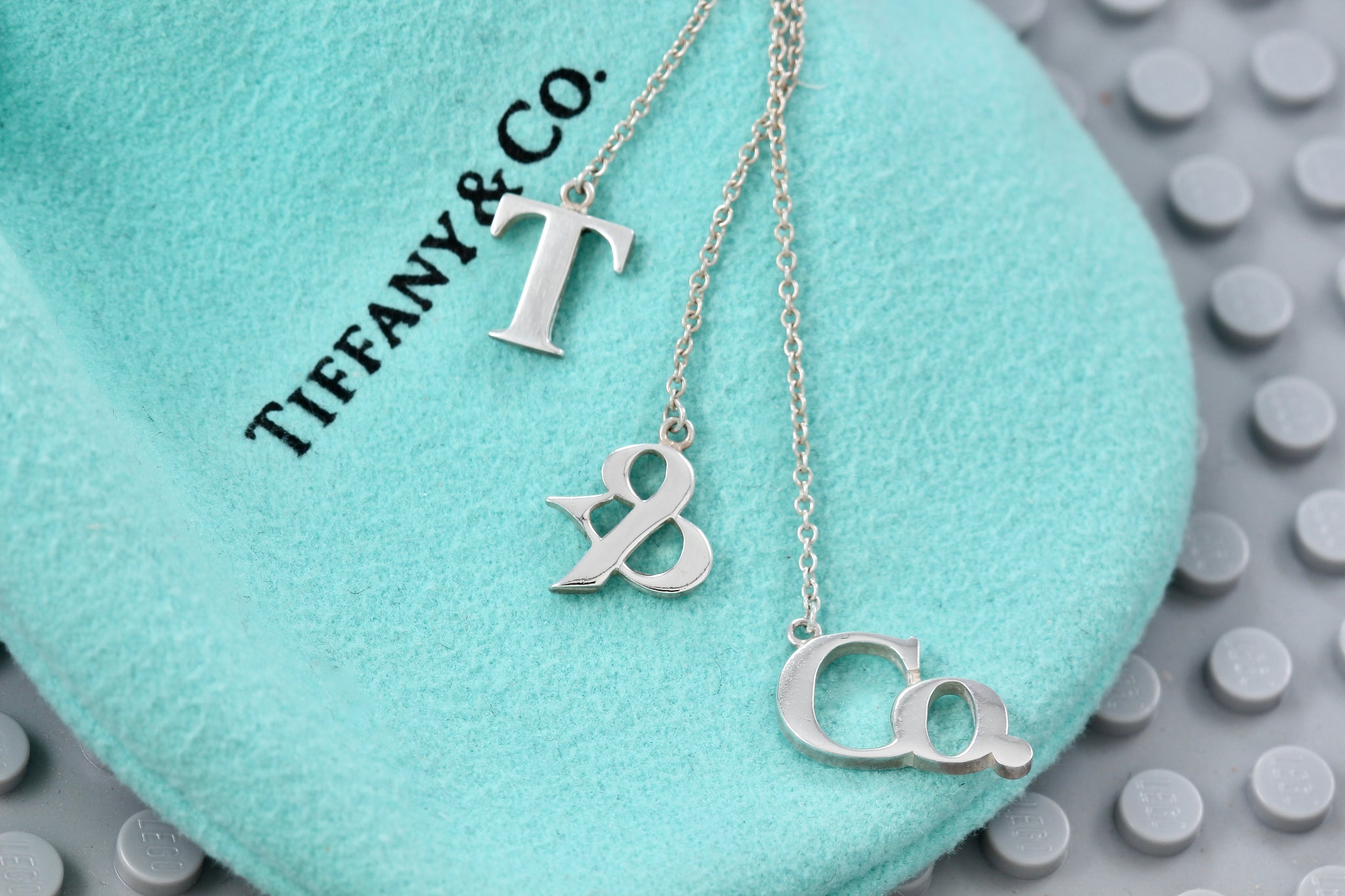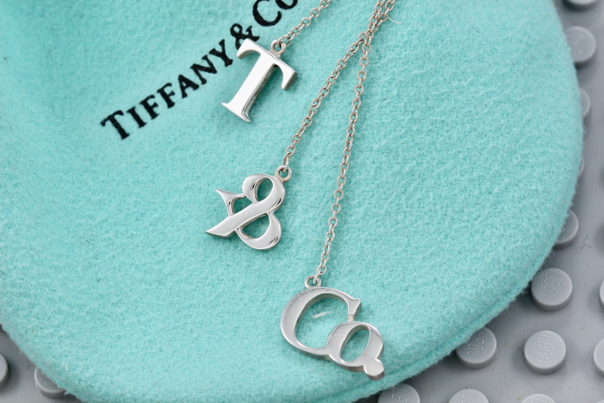 Tiffany & Co. Silver Dangling ''T & Co.'' Dangle Charm Pendant 16" Necklace