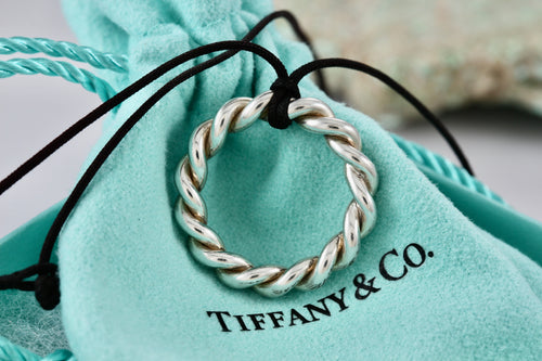 Tiffany & Co. Silver Large Twist Circle Pendant Silk Cord Necklace