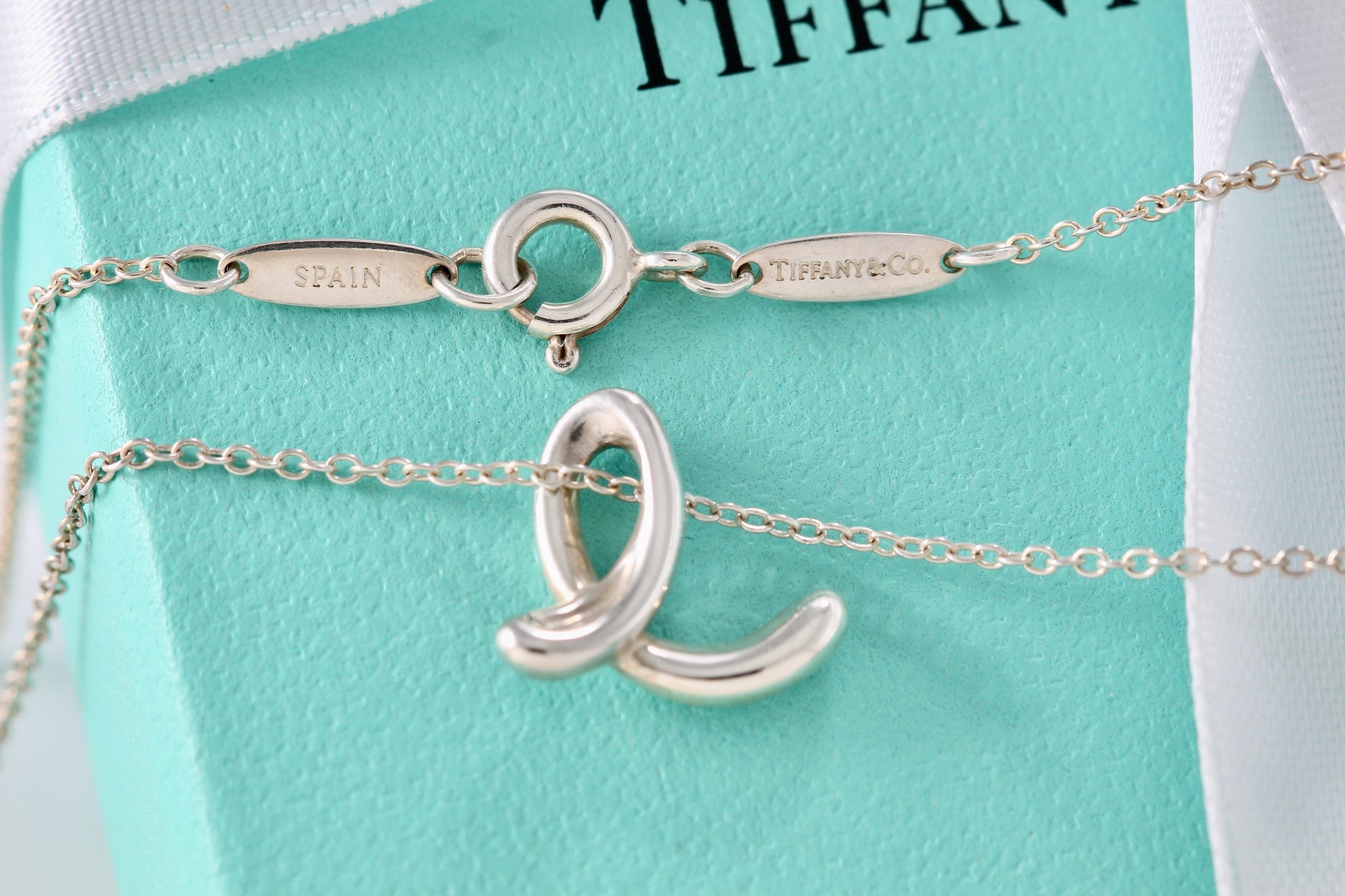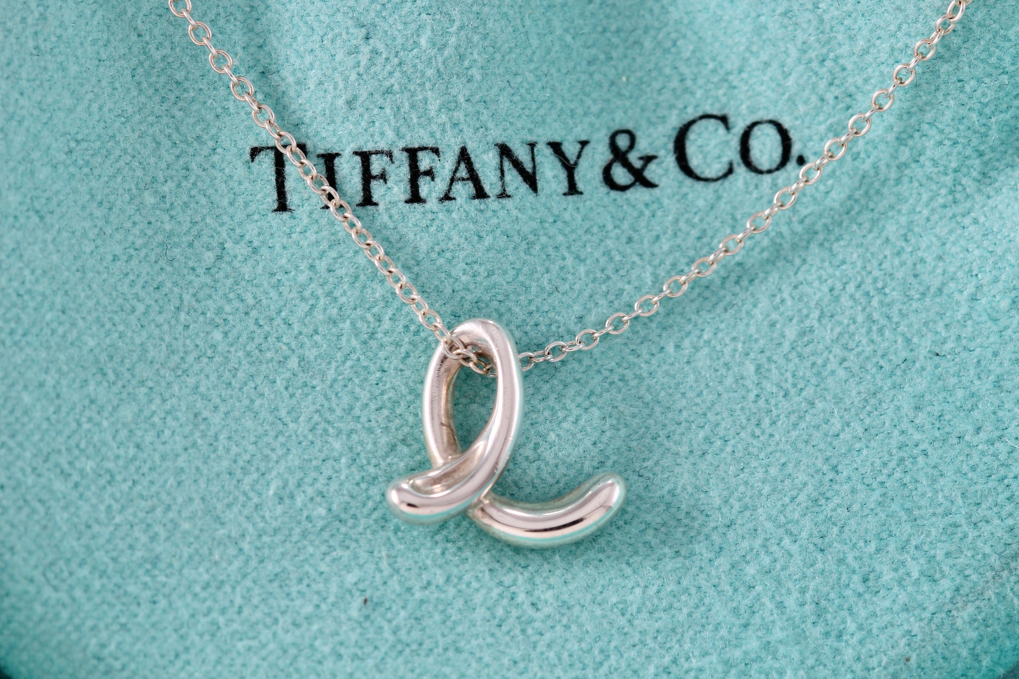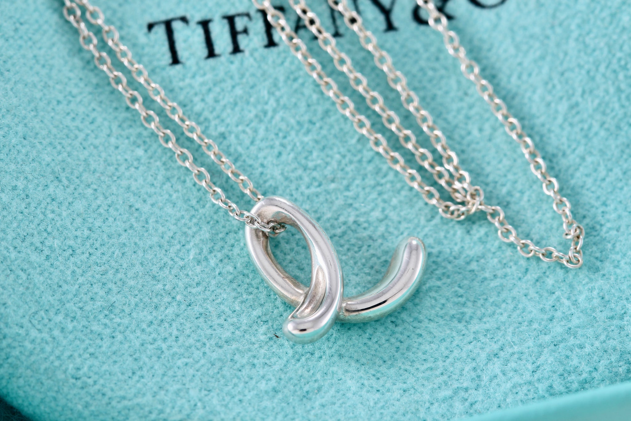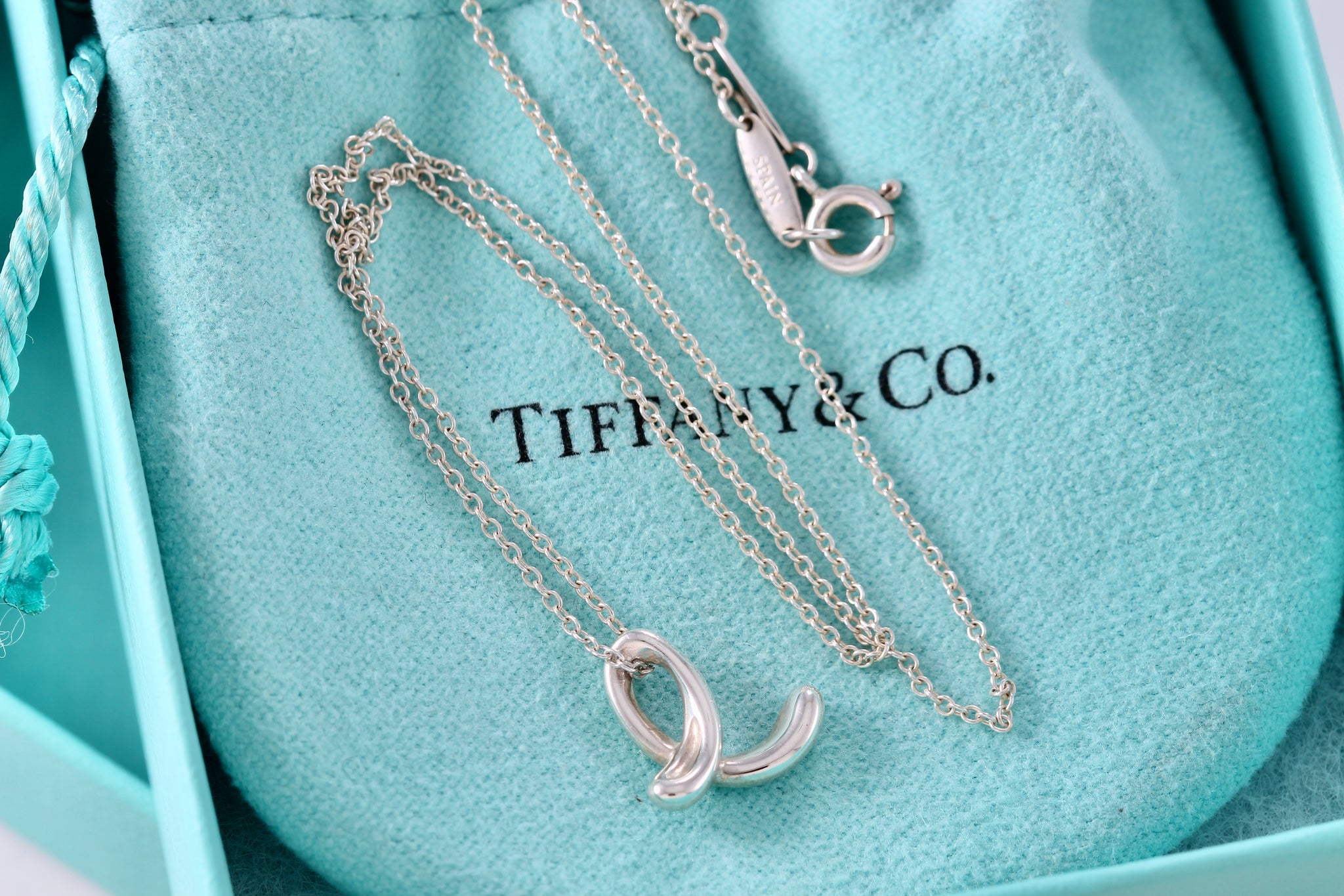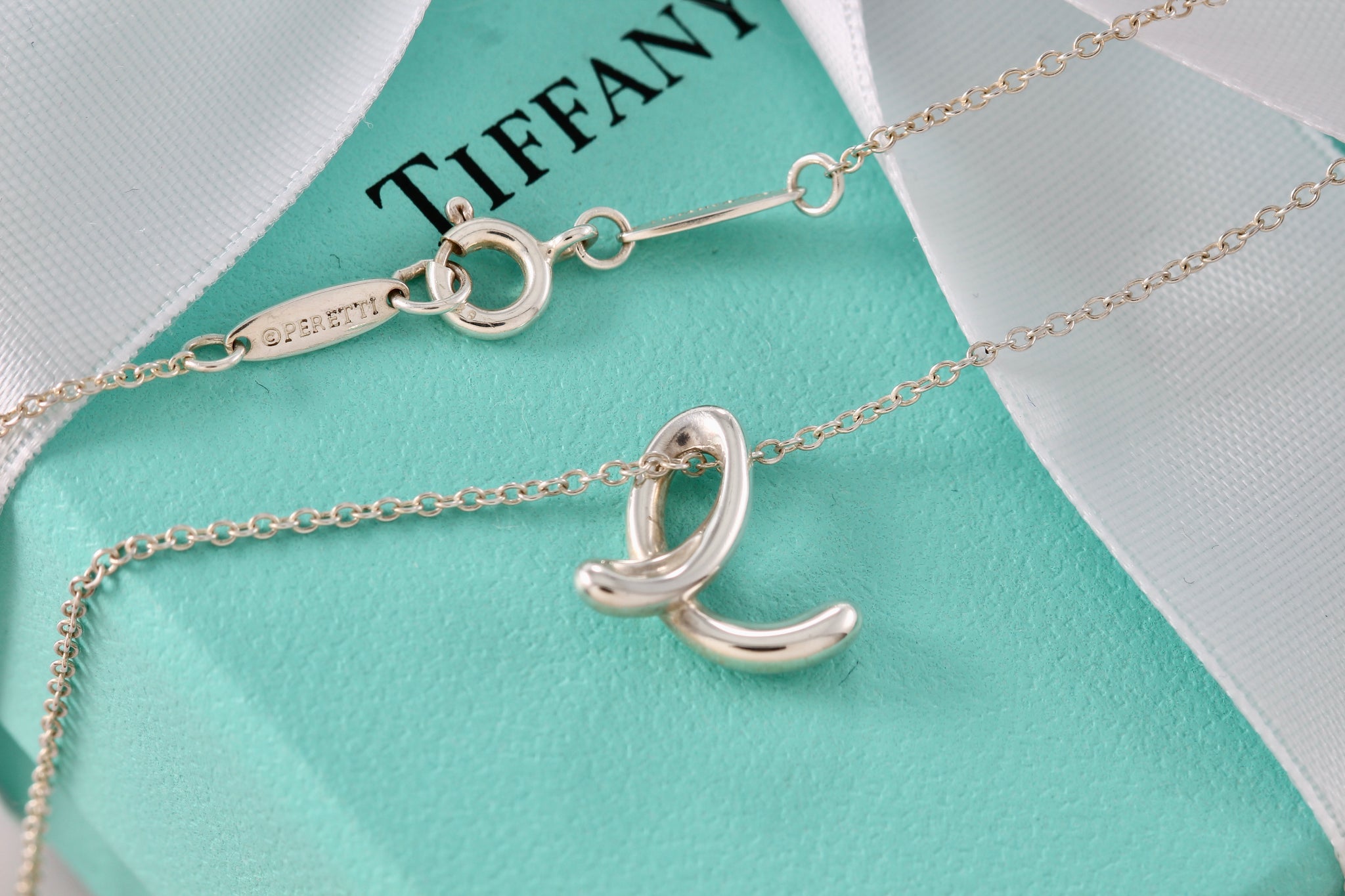 Tiffany & Co. Elsa Peretti Silver Alphabet Letter "E" Pendant 16" Necklace