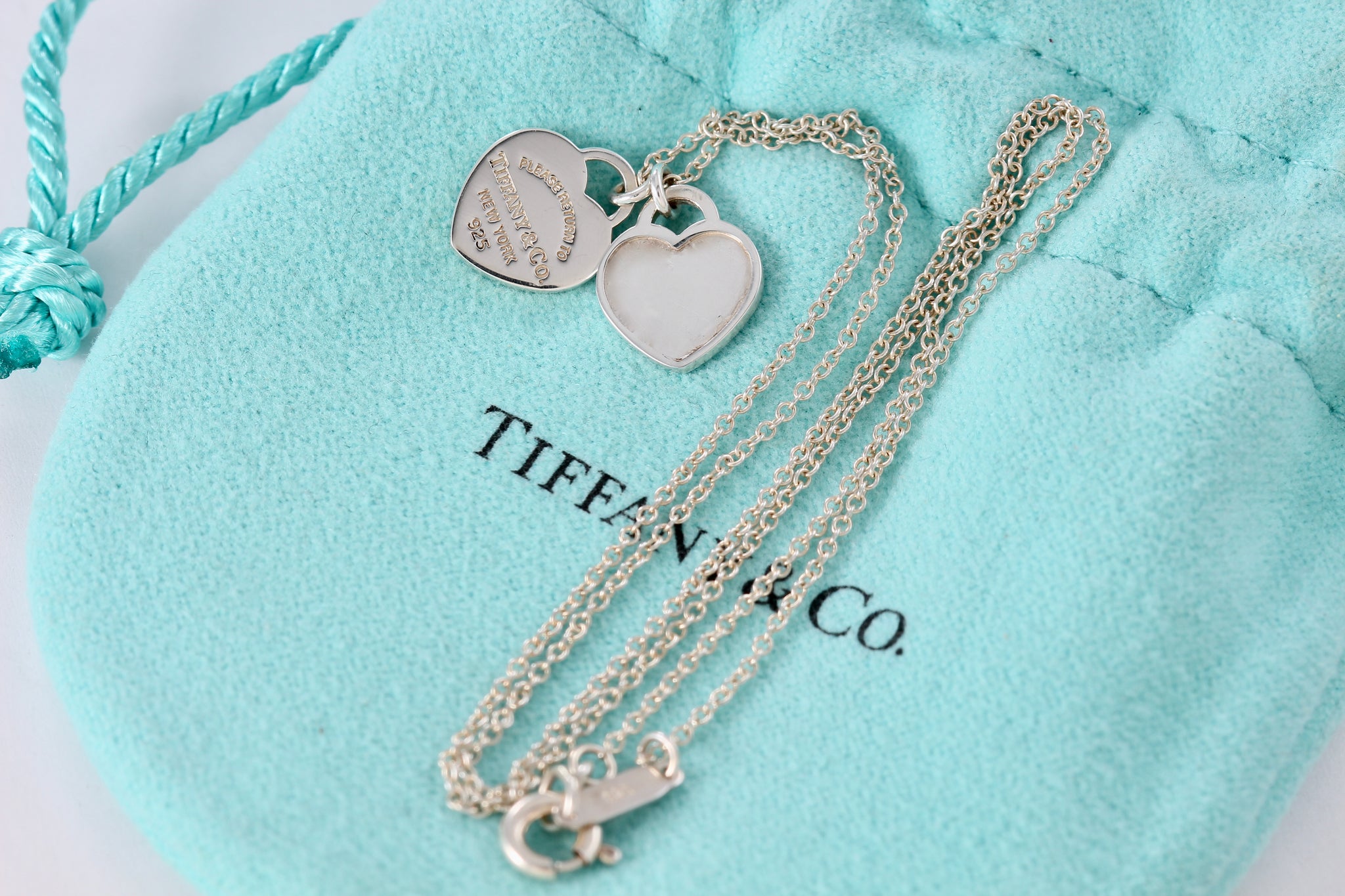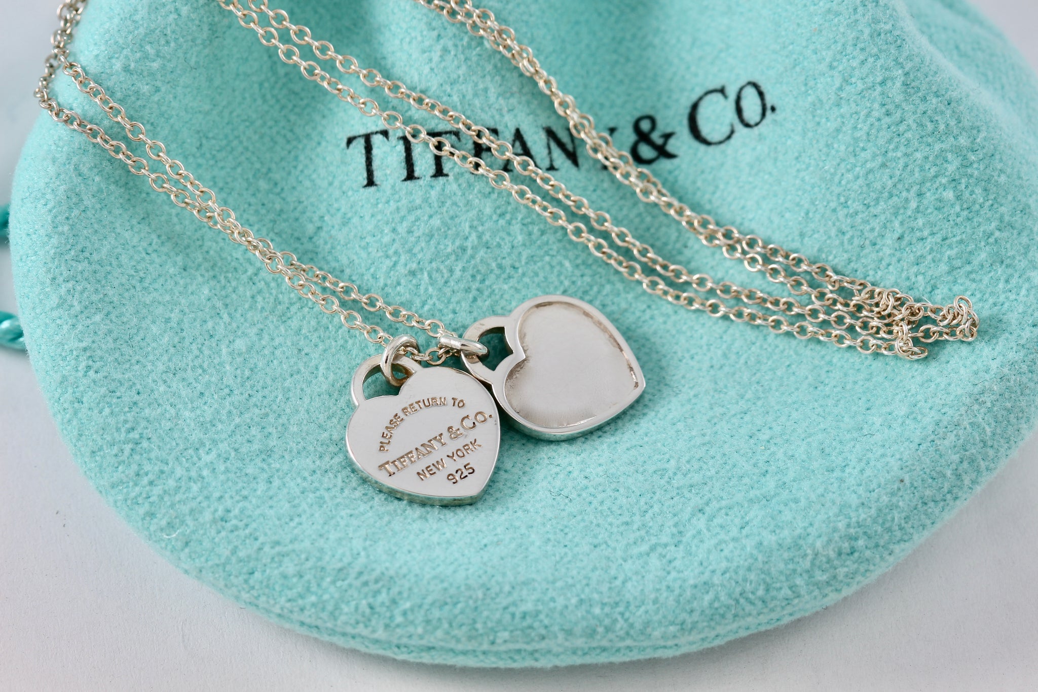Return To Tiffany & Co. Silver Double Mini Double Heart 16" Necklace