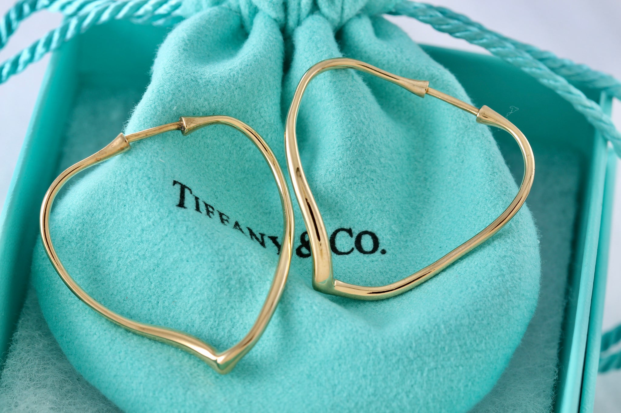 Tiffany & Co. Elsa Peretti 18K Large Open Heart Hoop Earrings