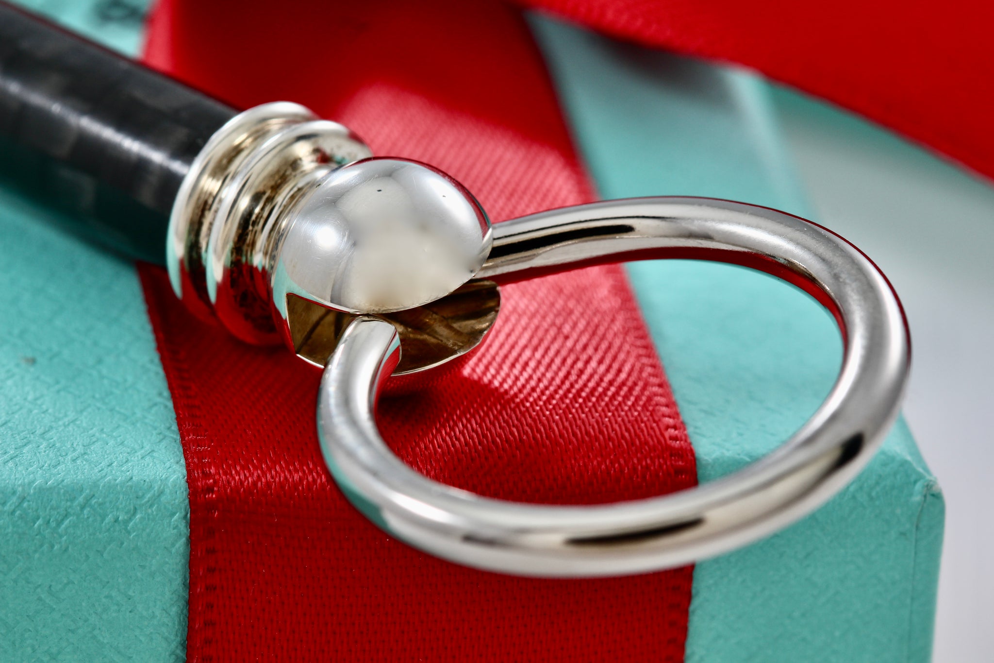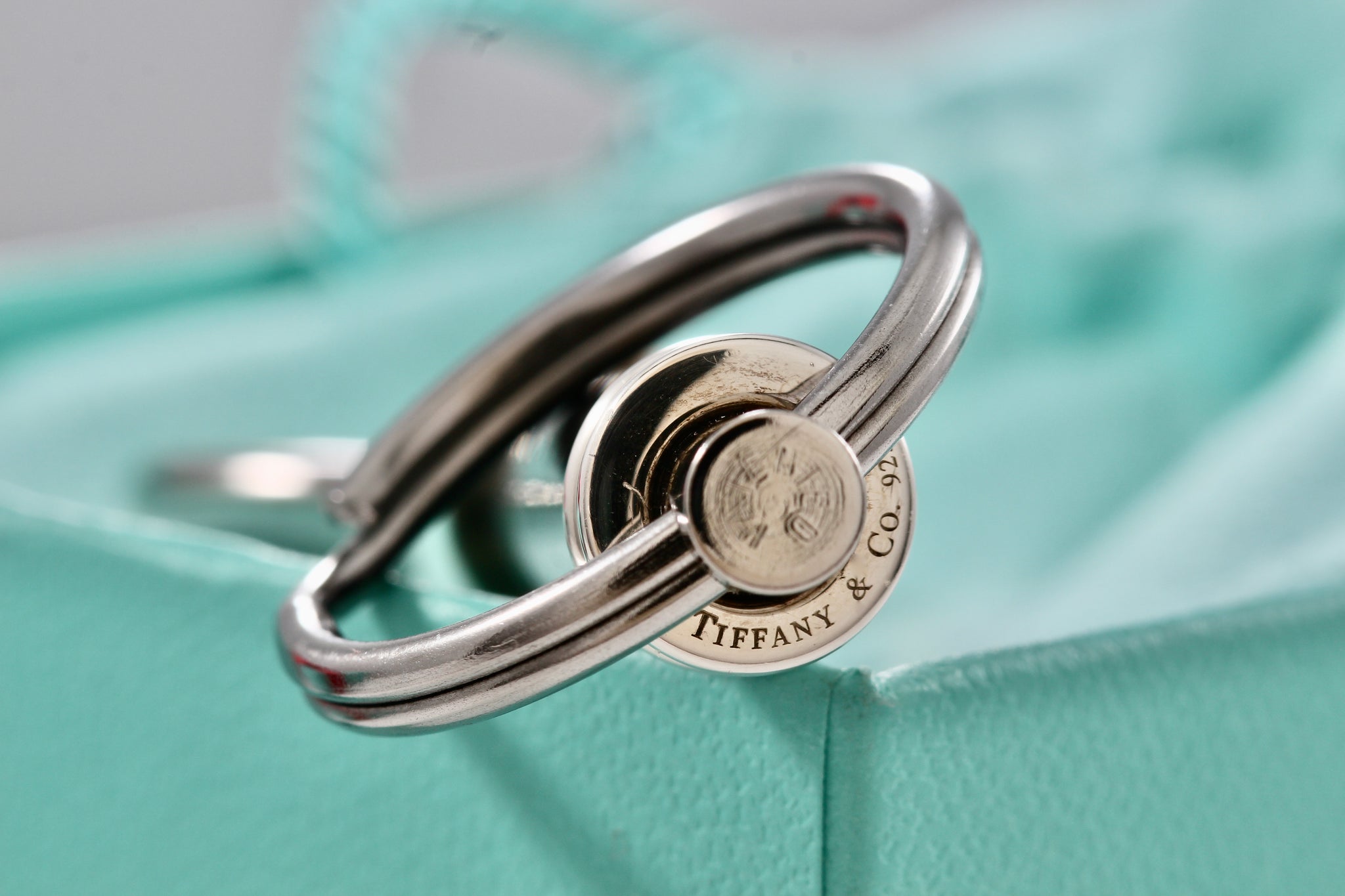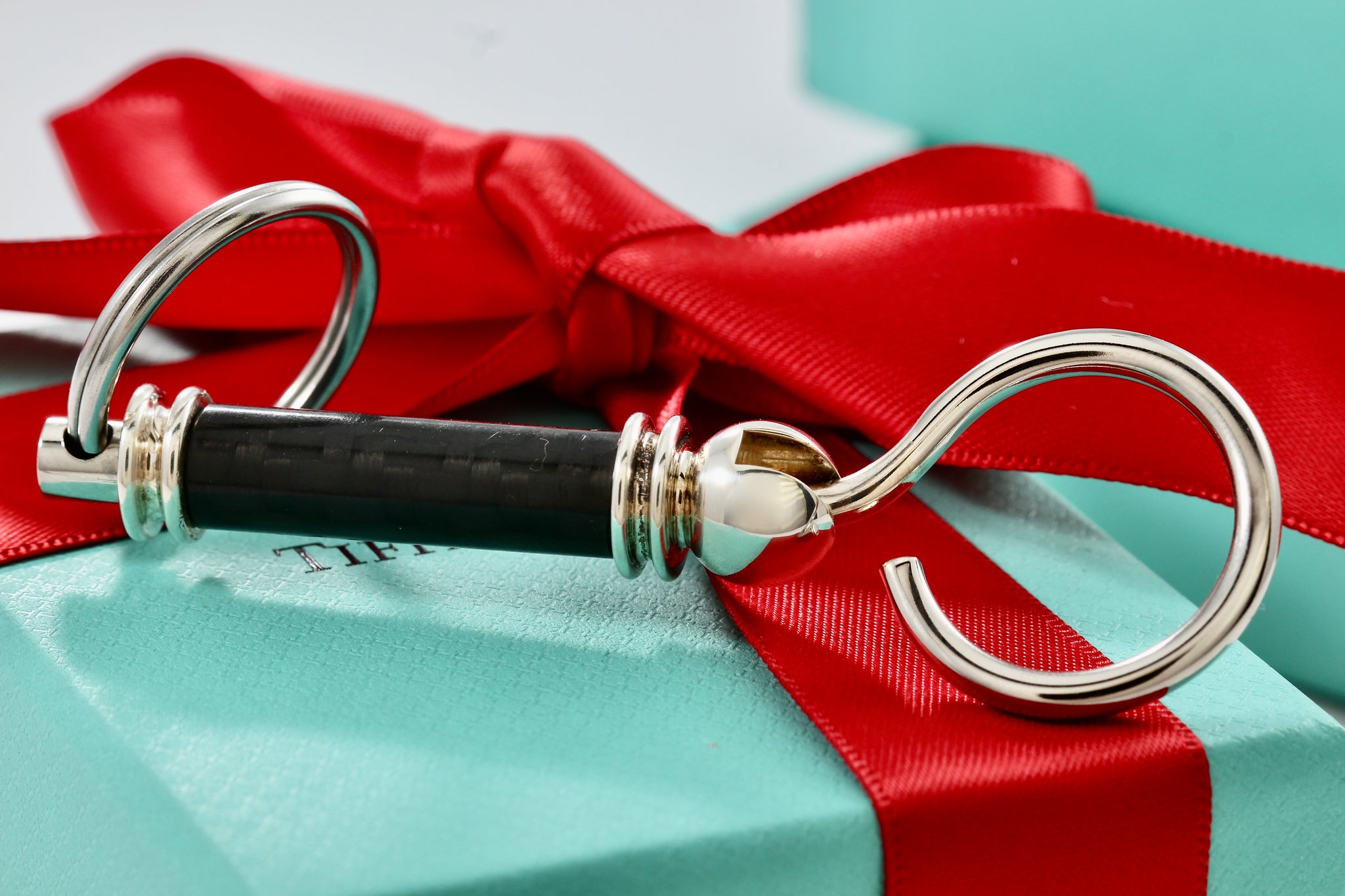 Tiffany & Co. Silver Carbon Fiber Valet Double Key Ring Keychain