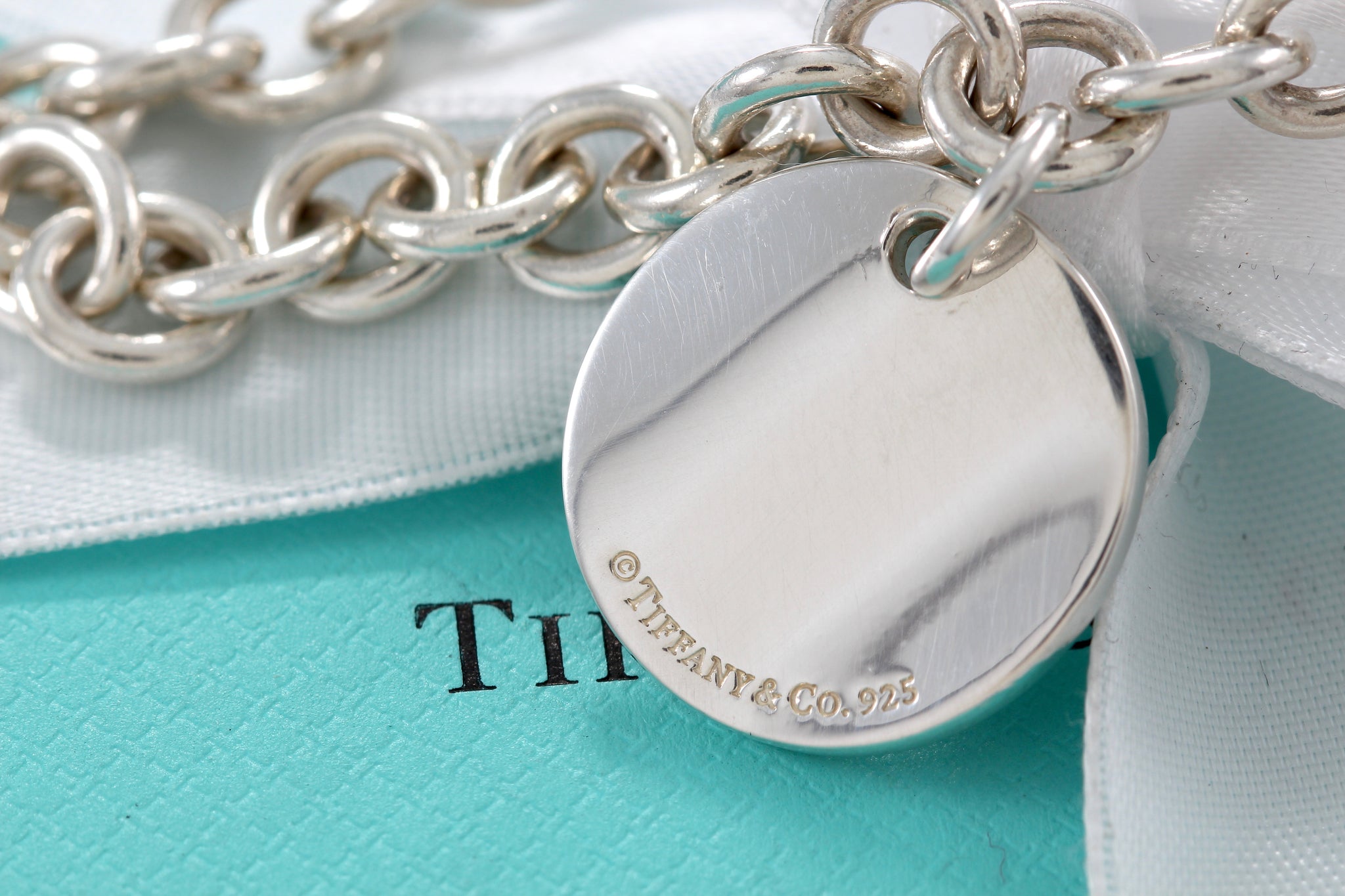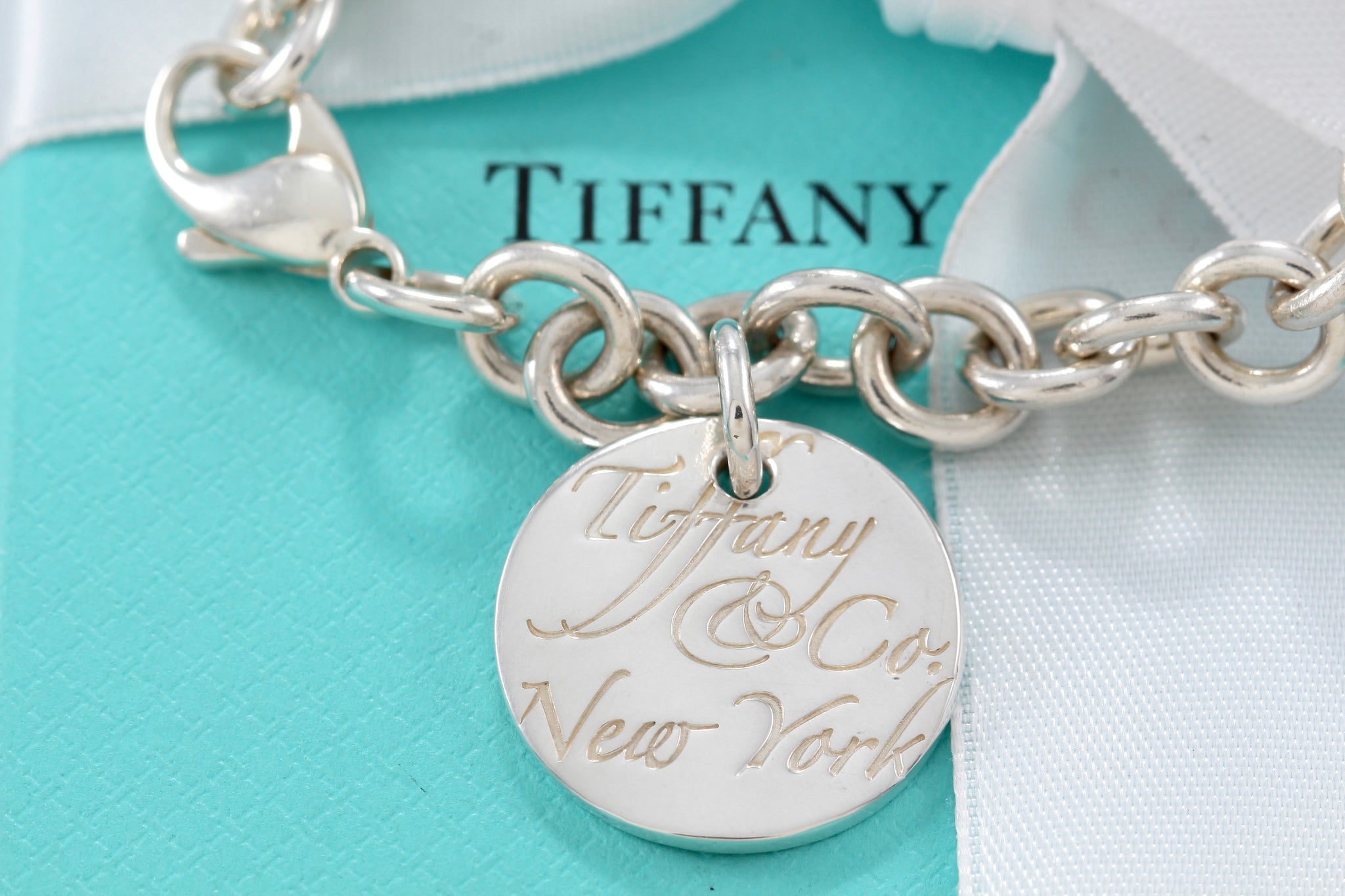 Tiffany & Co. Silver Notes Small Wavy Round Tag 7.5" Bracelet