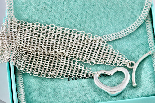 Tiffany & Co. Elsa Peretti Silver Mesh Open Heart Toggle 7.5" Bracelet