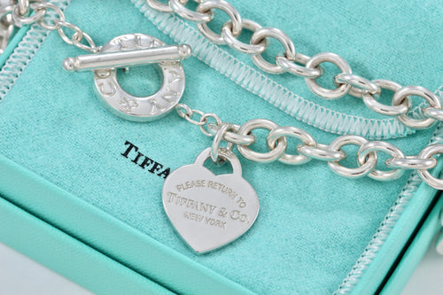 Return To Tiffany & Co. Silver Heart Charm Toggle Heavy Link Necklace NEWEST VERSION
