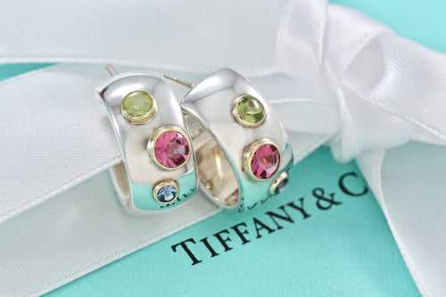 Tiffany & Co. Gold & Silver Etoile Gemstone Hoop Earrings