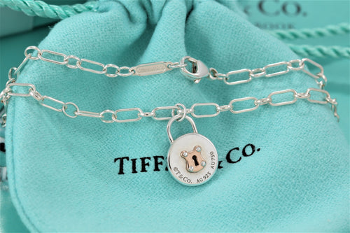 Tiffany & Co. 18K Gold & Silver Small Keyhole Circle Padlock Charm Bracelet
