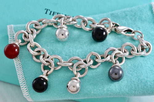 Tiffany & Co. Hardwear Silver Fascination Hematite Carnelian and Onyx Dangle Ball Bracelet