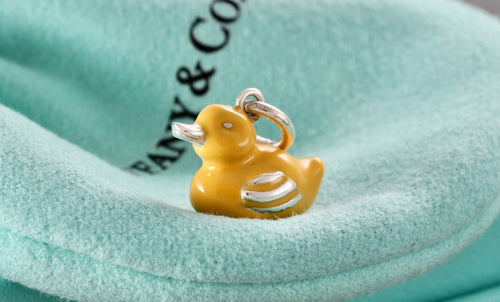 Tiffany & Co. Silver Yellow Enamel Duck Charm Pendant