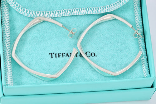 Tiffany & Co. Silver Frank Gehry Large Square Torque Hoop Earrings