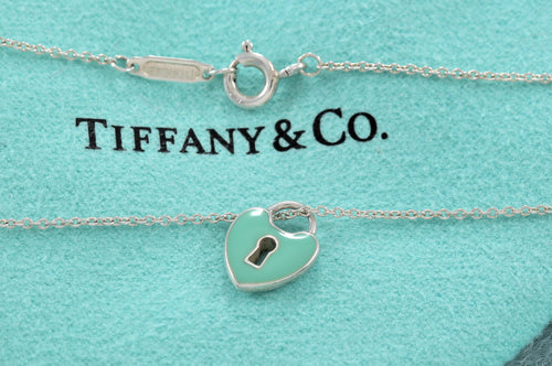 Tiffany & Co. Silver Blue Enamel Mini Keyhole Heart Pendant Necklace