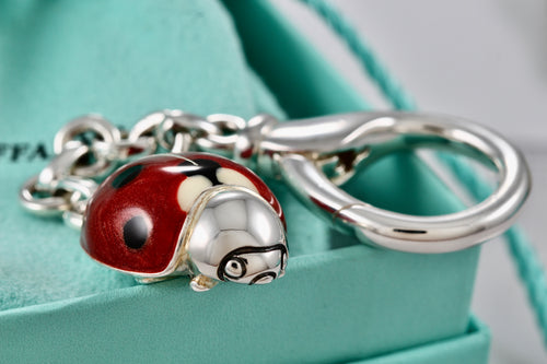 Tiffany & Co. Nature Silver Red Enamel Ladybug Keychain Key Ring/ Purse Clip