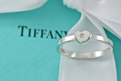 Tiffany & Co. Paloma Picasso Diamond Silver Heart Stacking Band Ring