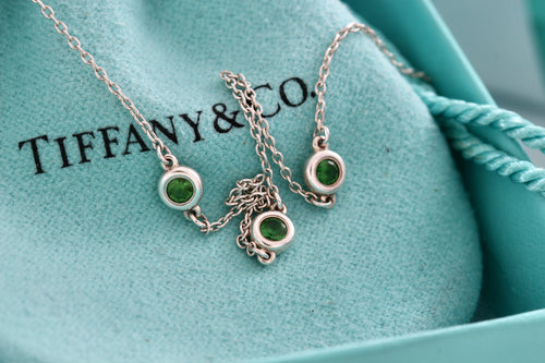 Tiffany & Co. Elsa Peretti Color By The Yard Tsavorite 3 Stone Chain 8" Bracelet