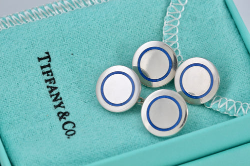 Tiffany & Co. Mens Silver Blue Enamel Dangle Circle Cufflinks Vintage